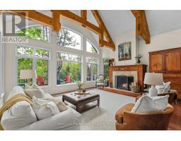 Where Stories Begin and Memories Stay: A Family Riverfront Retreat on the Black River Own it solo or share it with family or friends the magic of Muskoka is best when experienced together.Nestled along 405 feet of private shoreline with breathtaking westerly sunsets, just outside Bracebridge, this exceptional property offers not one, but two distinct dwellings, making it the perfect setting for multi-generational living, shared ownership, or a timeless family getaway.The main year-round residence, built in 2005, welcomes you with a warm timber framed accents design and soaring windows that flood the space with natural light and frame the beauty of the river beyond. Its open-concept layout is both bright and inviting, with a main floor primary suite, three additional bedrooms upstairs, and two dens below. A stunning stone fireplace anchors the living space, while a Muskoka room extends your living area into the trees perfect for relaxing to the sounds of the forest or gathering for evening games and laughter. The lower level also features a large games room, a formal living room, and walkout access that keeps you effortlessly connected to the outdoors. Steps away, the 1974 log cabin stands as a testament to decades of family joy. Lovingly preserved, it offers three generous bedrooms, a 3-piece bath, its own Muskoka room, and a storybook setting right at the rivers edge. Here, children catch frogs by day and roast marshmallows by the campfire under the stars by night. The walls echo with laughter, and the beams hold generations of memories. With no other structures in sight, this is your own hidden paradise where peace, privacy, and natural beauty converge. Whether you're seeking a peaceful year-round home, a multi-generational compound, or an investment in connection and nature, this property delivers the lifestyle only Muskoka can provide. Don't miss your chance to make Muskoka HOME! (id:46441)