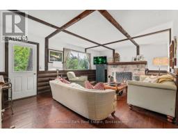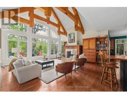 Where Stories Begin and Memories Stay: A Family Riverfront Retreat on the Black River Own it solo or share it with family or friends the magic of Muskoka is best when experienced together. Nestled along 405 feet of private shoreline with breathtaking westerly sunsets, just outside Bracebridge, this exceptional property offers not one, but two distinct dwellings, making it the perfect setting for multi-generational living, shared ownership, or a timeless family getaway.The main year-round residence, built in 2005, welcomes you with a warm timber framed accents design and soaring windows that flood the space with natural light and frame the beauty of the river beyond. Its open-concept layout is both bright and inviting, with a main floor primary suite, three additional bedrooms upstairs, and two dens below. A stunning stone fireplace anchors the living space, while a Muskoka room extends your living area into the trees perfect for relaxing to the sounds of the forest or gathering for evening games and laughter. The lower level also features a large games room, a formal living room, and walkout access that keeps you effortlessly connected to the outdoors. Steps away, the 1974 log cabin stands as a testament to decades of family joy. Lovingly preserved, it offers three generous bedrooms, a 3-piece bath, its own Muskoka room, and a storybook setting right at the rivers edge. Here, children catch frogs by day and roast marshmallows by the campfire under the stars by night. The walls echo with laughter, and the beams hold generations of memories. With no other structures in sight, this is your own hidden paradise where peace, privacy, and natural beauty converge. Whether you're seeking a peaceful year-round home, a multi-generational compound, or an investment in connection and nature, this property delivers the lifestyle only Muskoka can provide. Don't miss your chance to make Muskoka HOME! (id:46441)