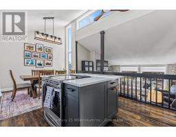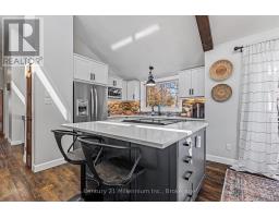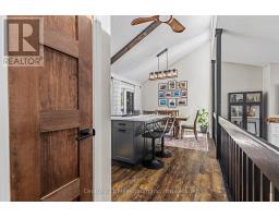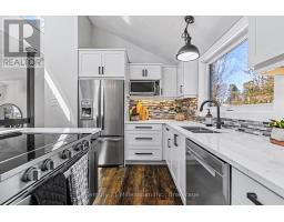 Tucked away on a quiet street in a sought after Markdale neighbourhood, this meticulously maintained home offers a unique layout, bright living spaces, and comfortable indoor and outdoor living. The main level features an open-concept kitchen, dining, and living area designed for everyday living and easy entertaining. The kitchen includes a large island and modern finishes, while generous windows fill the space with natural light. The living room is enhanced by a vaulted ceiling that adds openness and character to the main living area. From the dining area, step out to the spacious back deck overlooking the backyard, an ideal setting for outdoor dining, relaxing evenings, or gathering with family and friends.The main floor includes three bedrooms, including a primary bedroom with walkout access to a private balcony, providing a peaceful spot to enjoy your morning coffee or unwind at the end of the day. The lower level offers additional living space with a cozy family room featuring a gas stove, a versatile fourth bedroom or office, an updated bathroom, and a laundry area. Interior access to the attached garage and additional storage space adds convenience to daily living.Outside, the property features attractive landscaping, a generous yard, and inviting outdoor spaces to enjoy throughout the seasons. Additional highlights include an updated kitchen, updated bathrooms, metal roof, owned water softener, a newer ductless heat pump for efficient heating and cooling, a single attached garage with EV charging capability, and a concrete driveway with parking for multiple vehicles.Located within walking distance to shops and everyday amenities, and close to local trails, golf, and hospital services, this home offers comfortable living in the heart of Markdale. (id:46441)