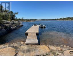 AMAZING RARE TURN-KEY ISLAND OPPORTUNITY IN POINTE AU BARIL! This is a true turn key opportunity in quiet Fredric Inlet with an island that is very private with many walking paths. This 6 Bedroom, 3 Bathrooms and 2 Shower Cottage can sleep up to 14, is well kept with a new last year solar system and generator and almost new steel shake roof. Two sheltered docks. 20 mins to Pointe au Baril marinas and ten to the historic Ojibway club. Island has a private beach and great sunset and Shawanga Bay views. All furnishings, appliances and finishes are top drawer. Crown Verity BBQ on deck, 4 propane tanks, Jotul air tight wood stove keeps cottage cozy Spring and Fall. Bunkie has two bunk bedrooms and bathroom between them. There is a separate building with a shower and washing machine. New submersible water pump. Boat shed is 3 years old. Dock decking replaced 2 years ago. 7KW Honda EU Generator is two years old, as is solar system. Cottage totally mouse proofed when built. Cottage has 3pc. bath, 4 generous bedrooms and bunkie can sleep 6 with two bunk bedrooms a Jack and Jill bathroom. The kitchen appliances are all new as are the granite counter tops and soft close drawers. This is a real gem separate island cottage in a great private location for watersports and deep easy access from Pointe au Baril! Island is surrounded by Crown Land! (id:46441)