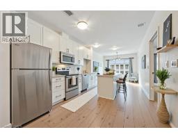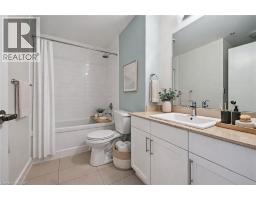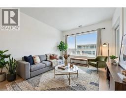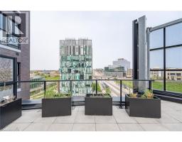Welcome to Suite 706 at 1 Victoria - a stylish executive condo in the heart of Kitchener's Innovation District. This bright and modern suite offers 659 sq. ft. of smart, efficient living space designed for both comfort and style. The open-concept kitchen features crisp white cabinetry, granite countertops, stainless steel appliances, a glass mosaic backsplash, and a spacious centre island perfect for meal prep, casual dining, or gathering with friends.The generous one-bedroom layout includes an oversized bedroom with space for a cozy seating area and a walk-in closet, while expansive windows in both the living room and bedroom fill the space with natural light. Engineered flooring throughout and in-suite stackable laundry add everyday convenience. Step out onto your private balcony overlooking the beautifully landscaped terrace, complete with raised flower beds, gardens, and relaxing seating areas - your own little urban escape. This unit also includes underground parking and a storage locker. Residents enjoy access to fantastic amenities, including a bright fitness centre, media room, and party room. Perfectly located in the core of the Innovation District, you're just steps to the LRT, GO Station, Victoria Park, the University of Waterloo School of Pharmacy, Google, McMaster's School of Medicine, Communitech, restaurants, cafés, and more. Urban living at its best - stylish, connected, and incredibly convenient. Photos have been virtually staged. (id:46441)