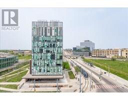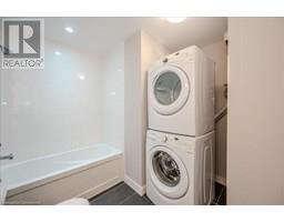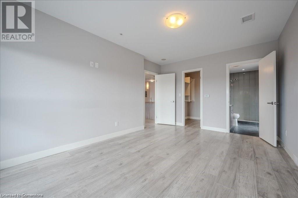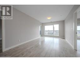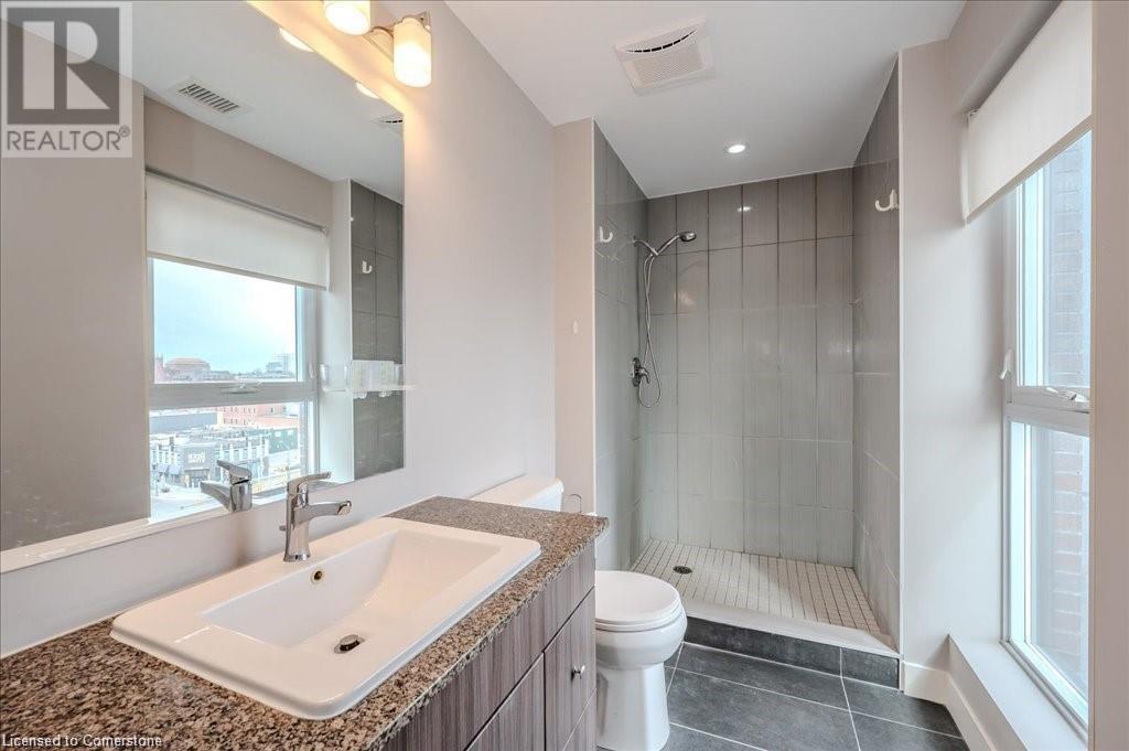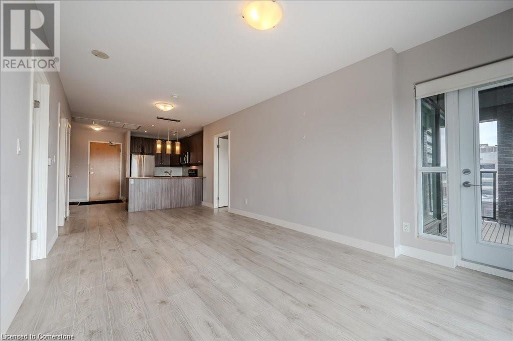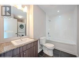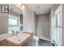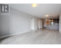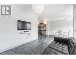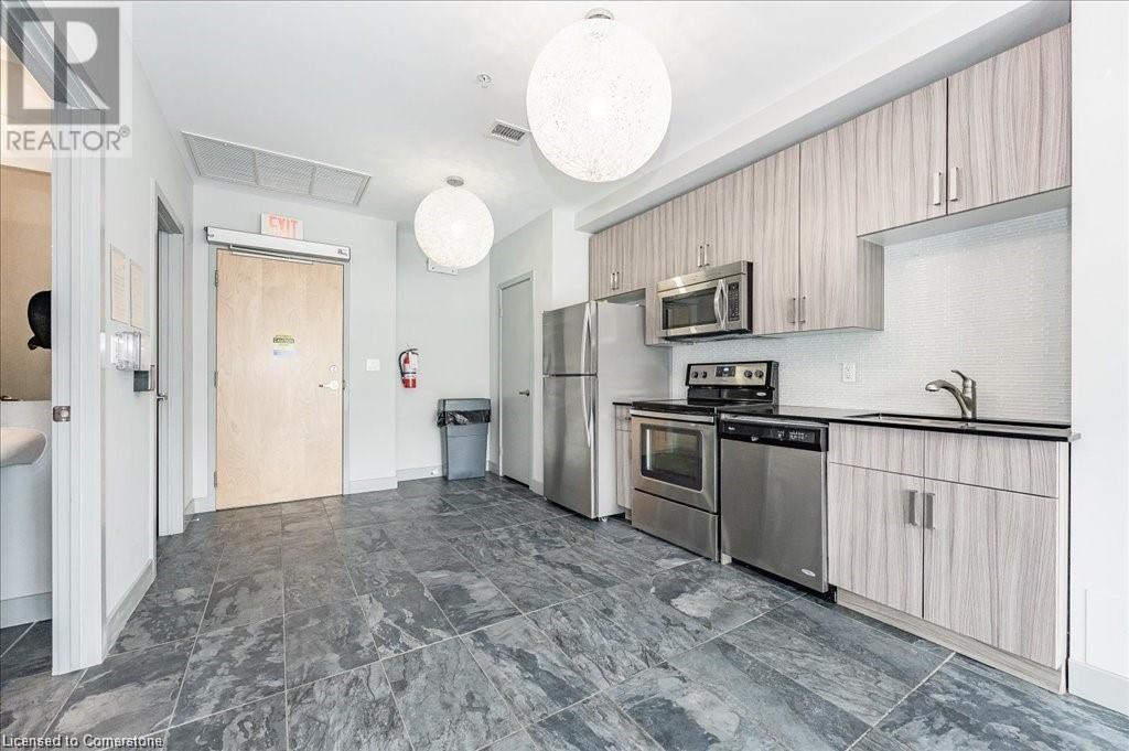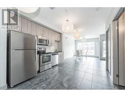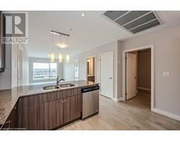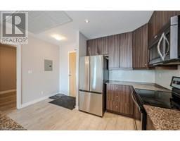 Condo living at its finest and space to work from home! Located in the heart of downtown Kitchener, this 1156 sqft including balcony corner unit, is the perfect home for young professionals or those looking to downsize but still need space. Featuring 2 bedroom plus den, 2 bath, a sleek modern design and finishes with the convenience of downtown living. Open concept living space features a kitchen with pristine cabinetry with lots of storage, stainless steel appliances including dishwasher, double door fridge with lower freezer, double sinks, glass tiled backsplash, pendant lighting and granite counters. There is also a peninsula with space for 3 stools perfect for meals or entertaining friends. Light laminate floors throughout the unit gives it a bright airy feel. Large windows flood the unit with natural light and give the owner great views to the west of the city. Primary bedroom with 3 pce ensuite features a tiled shower, granite counters and a walk-in closet with build in organization storage system. The unit also features a 2nd bedroom plus a separate den space perfect for those that work from home. The main 4 piece bath also has space included for insuite laundry with stackable washer and dryer. The building amenities features a media room for entertaining friends to a movie night, gym and common room kitchen adjacent to outdoor patio space. There are 2 lockers with this unit perfect if you need lots of storage. One underground parking spot included. Walking distance to shopping, summer concerts and events ,Victoria Park and the Light Rail transit(LRT) this unit is ready to move in. (id:46441)