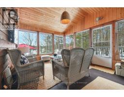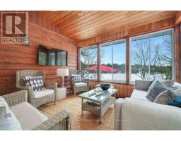 Tucked away on 1.69 acres with 354 feet of shoreline this property delivers exceptional privacy, lake views and a coveted southwest exposure, sun filled days and golden evening sunsets. The main cottage blends comfort and function with an easy open layout. The kitchen connects seamlessly to the dining and living areas creating a natural gathering space for family and friends. Large windows frame the water while the three-season Muskoka room offers a relaxed spot to enjoy the outdoors without leaving the comfort of the home. With 3 bedrooms and 2 bathrooms including a generous primary suite overlooking the lake there is plenty of room for both everyday living and hosting. The lower level adds valuable space with a walkout rec room and additional living area ideal for guests, kids or quiet downtime. Outside the lifestyle really comes together. Unwind on the dock, spend your days on the water and enjoy the peace that comes with year round cottage/home life. A separate updated 2-bedroom bunkie for guest accommodations while the two-bay garage with drive-through access offers practical storage for vehicles, toys and equipment. Well maintained, thoughtfully updated and set on an exceptional piece of land this is a turnkey waterfront property for making memories in every season. (id:46441)