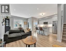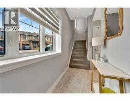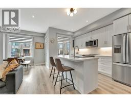 SUNSET VIEWS & MODERN LUXURY – BIRMINGHAM DRIVE. Welcome to Unit 117, a stunning luxury freehold townhouse offering over 1,340 sqft of stylish living space in the heart of Cambridge. This 2-bedroom, 1.5-bathroom home blends modern finishes with a family-friendly location. Step inside to soaring 9-foot ceilings on both the lower and main living levels, accented by pot lights with dimmer switches that create the perfect ambiance day or night. The open-concept layout is anchored by a sleek, customized kitchen featuring Caesarstone quartz countertops, undermount cabinet LED lighting, and deep pull-out drawer banks. Luxury wide plank vinyl flooring flows seamlessly into the dining and living areas, where natural light pours in and sunset views set the perfect backdrop. Upstairs, the spacious primary bedroom boasts a large walk-in closet, walkout to a balcony, and extra storage, while the second bedroom offers flexibility for family, guests, or a home office. 2 private balconies in total– including a covered patio and a sun-drenched sundeck – invite you to relax outdoors in every season. Thoughtful upgrades include an open staircase design, gas line rough-in for a future gas range, an upgraded 200-amp electrical panel with EV prep, and a single-car garage with additional storage, a keypad, and app-enabled remote monitoring for peace of mind. All of this is set in a vibrant community with walking trails, a park complete with a jungle gym and basketball court, and unbeatable access to shopping centres, restaurants, coffee shops, gyms, and the 401 – everything you need just steps from your door. Here, modern living meets a truly great community. (id:46441)