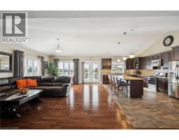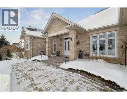 Welcome to an extraordinary custom-built bungalow offering nearly 5,000 sq. ft. of impeccably finished living space, set in an exclusive neighbourhood of just 14 distinguished properties. This home is a rare blend of elegant, thoughtful design, and, resort-inspired living. From the moment you enter, you will be wowed by the striking vaulted ceiling, and the luxurious heart of the home. The gourmet custom kitchen is appointed with premium stainless-steel appliances, granite counters, a large statement island, and elegant bay windows that bathe the space in natural light. The seamless flow into the formal dining room and sophisticated living room is designed for both grand entertaining and refined everyday living. The master bedroom is a private sanctuary, featuring direct access to an expansive deck overlooking the meticulously landscaped grounds. Step outside to your own secluded oasis — framed by mature spruce trees for exceptional privacy — complete with a heated saltwater pool and generous entertaining spaces designed for unforgettable gatherings or serene relaxation. The fully finished walk-out lower level, with its own private entrance, elevates this home’s versatility and value. A stunning custom-built bar anchors the space, creating an upscale entertainment lounge atmosphere. With its expansive layout, this level offers outstanding potential for a luxury in-law suite, multi-generational living, or a 3-bedroom income-generating suite — an exceptional opportunity for additional revenue without compromising privacy. Every detail of this private resort reflects quality craftsmanship, and prestige. It is a gem that masterfully blends luxury and sensibility. Add to that the investment potential, and this in indeed one remarkable home. (id:46441)