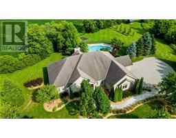 GLEN MORRIS GEM: SPRAWLING ESTATE WITH POOL, TRIPLE GARAGE & MORE. Tucked away on a quiet court in the heart of Glen Morris, this stunning custom bungalow offers a rare blend of privacy, comfort, and income-generating opportunity—all wrapped in an idyllic country setting. Set on nearly 1.48 acres of meticulously landscaped land, this 3-bedroom + main floor office, 2.5-bathroom home spans over 3,467 square feet of beautifully finished living space. From the moment you arrive, the sweeping driveway, manicured trees, and oversized triple-car garage set the tone for what’s to come. Step inside and discover soaring ceilings, rich hardwood floors, and an open, airy layout that’s perfect for family living or entertaining guests. The spacious kitchen, complete with custom cabinetry and granite counters, opens to the great room where large windows and a cozy fireplace create a warm and welcoming ambiance. Downstairs, the finished lower level with a separate entrance and rough-in for a bathroom offers endless possibilities—whether you're envisioning a guest suite, in-law setup, or income apartment. The backyard is truly the showstopper: enjoy summer days lounging by the in-ground pool, surrounded by stamped concrete and lush greenery. The propane pool heater is disconnected, but the included solar blanket offers an eco-friendly alternative. And speaking of solar—the fully owned solar panel system at the rear of the property generates significant monthly income. (Full income details available upon request.) It's a unique feature that adds both value and long-term savings to this already incredible property. Additional highlights include a new pool liner, pump, and filters 2024, pot lights throughout, central vac, r/o system, and uv filters, 200 amp panel, mature landscaping throughout, and a peaceful, family-friendly setting just minutes from the Grand River and nearby trails. Enjoy country living with every imaginable amenity just minutes from Paris, Brantford, and Cambridge. (id:46441)