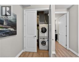 ELEGANT PENTHOUSE LIVING … Perched on the top floor, this stunning LAKESIDE CONDO at 602-10 Esplanade Place captures the essence of effortless, CAREFREE, WATERFRONT living in the heart of Grimsby. With 10’ ceilings and an abundance of natural light, this thoughtfully designed 1-bedroom PLUS DEN layout offers both comfort & style complemented by a 65 sq ft PRIVATE BALCONY showcasing breathtaking POOL & LAKE VIEWS. The open-concept living space is finished with sleek vinyl flooring and anchored by a modern kitchen featuring built-in appliances, QUARTZ countertops, tile backsplash, under-cabinet lighting, and potlights - creating a clean, contemporary feel ideal for everyday living or entertaining. The spacious primary bedroom is complete with double closets and LAKE VIEWS, while the versatile den offers flexibility for a home office or guest space. Convenience is key with IN-SUITE STACKABLE LAUNDRY, a well-appointed 4-pc bath, and ample storage solutions including locker (#198) and dedicated underground bike storage. Parking is a breeze with an UNDERGROUND SPACE (#128). Beyond the unit, residents enjoy access to a FULL SUITE OF AMENITIES, including a fitness centre, dog wash, party room, pool, PLUS VISITOR PARKING - enhancing the lifestyle experience this building has to offer. Set just steps from the waterfront, scenic trails, Grimsby Public Beach, and a vibrant mix of boutique shops & restaurants, this location balances relaxation with everyday convenience. With highway access just one minute away, commuting is seamless while still enjoying the charm of LAKESIDE LIVING. A rare opportunity to own a penthouse-level suite in one of Grimsby’s most desirable waterfront communities. CLICK ON MULTIMEDIA for virtual tour, floor plans, drone photos & more. (id:46441)