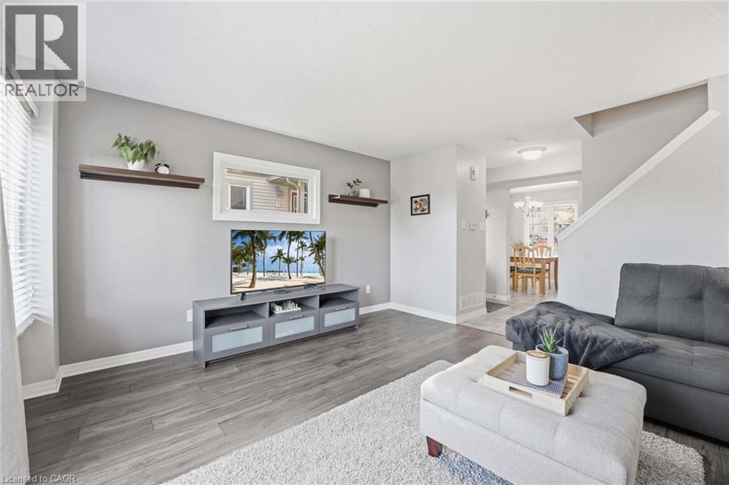 Welcome to 10 Foxglove Crescent, Unit 6, a bright and inviting end-unit townhome tucked away in a peaceful Kitchener neighbourhood! This extremely well-cared for home is waiting for its next proud owner! Step into an open living area, filled with natural light and perfect for family enjoyment. The kitchen is sure to impress, equipped with stainless steel appliances, a gas stove, and dedicated dining space for intimate family meals. Head upstairs to discover two comfortable bedrooms and a full bathroom. You will fall in love with the spacious primary bedroom, featuring two closets and a beautiful park view! The bright, open lower level provides versatile space, ideal for a rec room, office, or home gym. You will also find a newly finished bathroom, a convenient laundry area, and ample storage. Step outside onto your large deck, perfect for entertaining or relaxing on summer evenings, with direct access to Foxglove Park. The property also includes two parking spaces, as well as visitor parking. Located in a family-friendly community, the home is close to excellent schools, parks, and scenic trails. Enjoy the convenience of Sunrise Shopping Centre, just minutes away, with groceries, restaurants, clothing stores, and everything else you may need. Commuters will also appreciate the easy access to Highway 8. This beautiful townhome blends comfort, convenience, and charm. It’s everything you’ve been waiting for! Book your private showing today or visit our open house to see it in person! (id:46441)