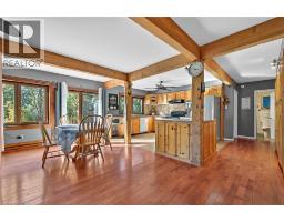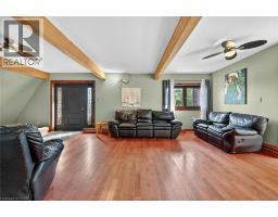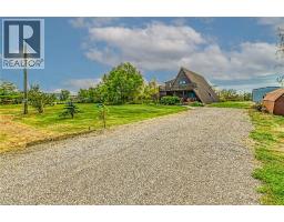 Experience refined country living near Lake Erie with partial lake views on 1.5 acres situated along a quiet dead-end road. This package includes a separate 2,000 sqft pre-engineered steel building/workshop (36’x55’x14’ clear height), built in 2015 equipped with 2 overhead doors (14’x16’ & 8’x16’), 200-amp hydro, concrete flooring, insulation, car hoist, and roughed-in water and gas lines. Two driveways allow for multiple parking spaces, including space suitable for a tractor trailer. The 2-storey home provides over 2,300 sqft of finished living space, in addition to an unfinished basement with a separate entrance that may be used for a secondary suite or additional finished space. The main floor features 2 bedrooms, a 4-pc bathroom, laundry room, sunroom/rear entry, and a kitchen with stainless steel appliances, centre island and pantry. The open concept dining room connects to the patio via sliding doors, while the great room has a wood-beamed ceiling and hardwood flooring. On the upper level, the primary bedroom suite showcases a vaulted ceiling, 3-pc ensuite with walk-in closet and a private balcony with views of Lake Erie. The basement is built on a poured concrete foundation, has roughed-in pipes for radiant in-floor heating, gas boiler, 200-amp electrical service, and storage space. Other features consist of a front entrance door (2022), triple glazed windows (2015), 2” exterior wood cladding (2012), roof shingles (2007), 2500-gal water cistern, full septic system, 4 ceiling fans, and central vacuum (as-is, not used). The property has a private pond and deeded access to Lake Erie and from Northshore Drive to the second driveway behind the workshop. The site is suitable for a variety of uses, making it ideal for truck drivers, mechanics, contractors, hobbyists, or families seeking the Lake Erie Lifestyle. It is located 10 mins east of Dunnville, about 1 km from the Mohawk Point Marina boat launch, with easy commutes to Niagara and Hamilton within 30–60 mins. (id:46441)