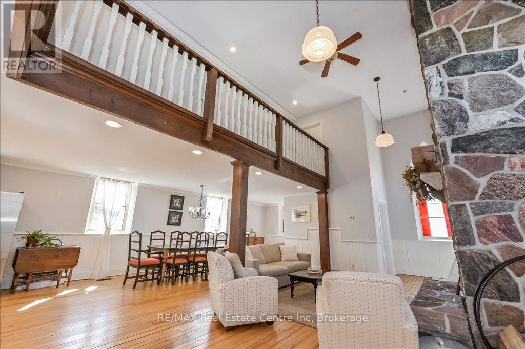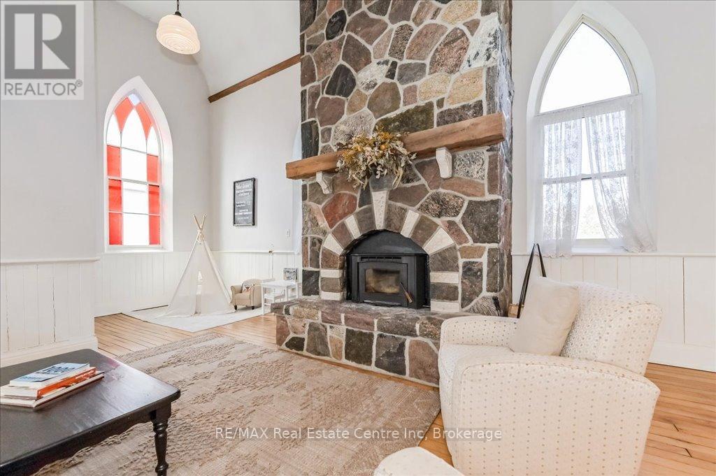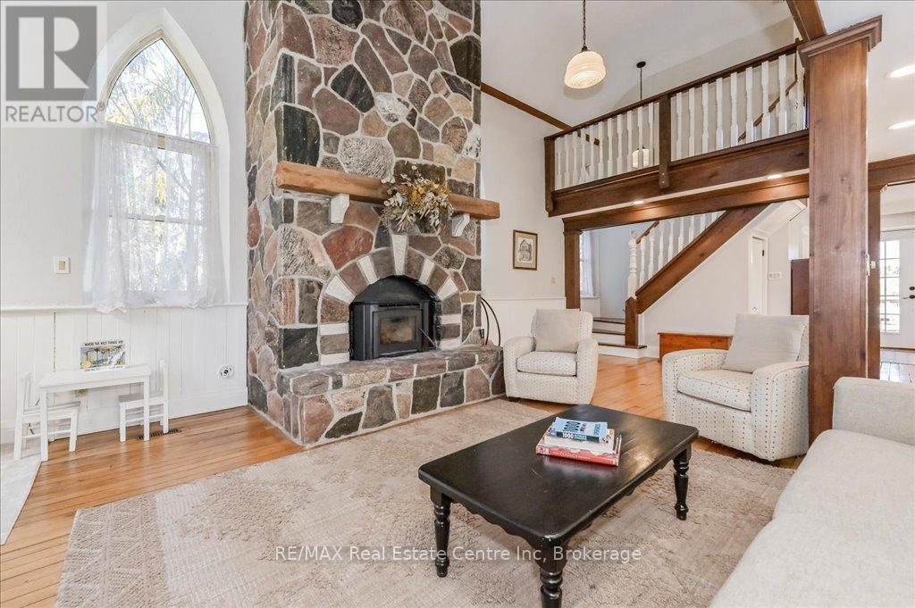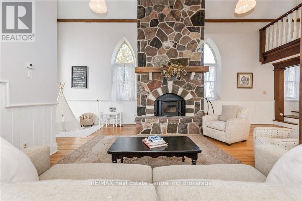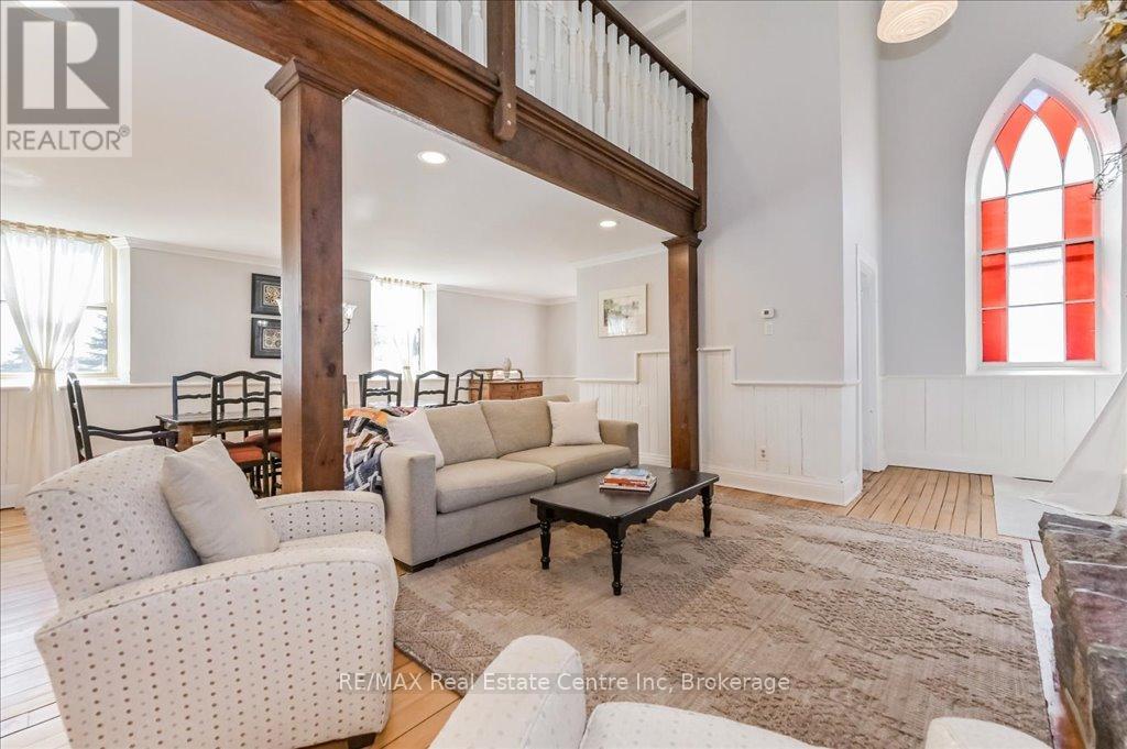 This is the home of your dreams and now with a price that is the dream come true. Featured home of HAVEN Magazine Toronto to call your own. Overlooking the river from the raised privacy perfect deck as it gently passes by while enjoying a good glass of wine a great conversation, I would like to welcome you to the 10 Mill Street in the beautiful Hamlet of Waldermar. This breathe taking 1887 Church converted to four level estate is one of the best examples of how old-world craftsmanship and modern design concepts blend perfectly. An open concept that is cozy and inviting yet with such features as a Seventeen foot floor to ceiling granite stone fireplace, harvest table for 12 plus and open concept gourmet level elegance filled kitchen. Sunlight pours through the church windows brightening every corner of the five bedrooms including a third level primary bedroom complete with walk in closet and separate ensuite boasting the entire length of the home. This home even has a fully functioning two-bedroom in-;aw suite with separate entrance and stone fireplace. The oversized two-car detached garage has it's own special feature of all heated engineered concrete basement for the ultimate cave space or home-based business. This home has so much to discover that these words simple fall short. Arrange your private showing to this once in a lifetime opportunity to own this Masterpiece! Take advantage of the new price and the pending HUGE interest rate change today! (id:46441)