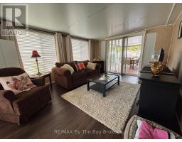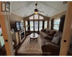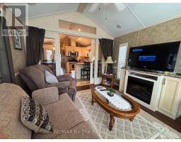 Seasonal Retreat in popular Countrylife Resort. Lots of room for entertaining. Woodland Park Muskoka model is built to the highest standard to keep you comfortable throughout the season. Low maintenance lot with paved 2 car parking. It is ready for your family to start enjoying the summer! large 10x10 Storage shed, 336 sq/ft of covered decks and a 4 season sunroom. Heated with Natural gas. Upgraded 20 Gal hot water tank and built in dishwasher. Resort features pools, splash pad, clubhouse, tennis court, play grounds, mini golf and walking path to the beach. Gated resort w/security. Immediate closing available. (id:46441)