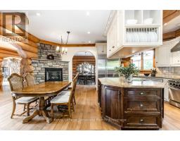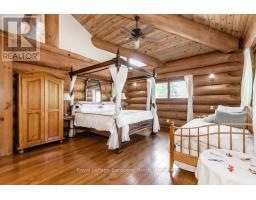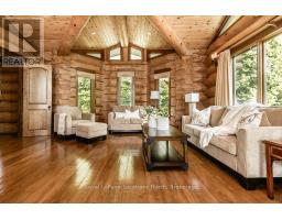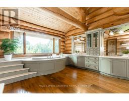 Welcome to one of Canada's most iconic luxury log homes, a rare Georgian Bay waterfront estate often described as the "Yellowstone of the North." Located at the very tip of Cedar Point on Georgian Bay, this one-of-a-kind waterfront mansion offers exceptional privacy, panoramic bay views & an irreplaceable point-of-land setting.Built in 2002 as a private resort-style retreat, this custom log estate sits on 4.37 acres with 412+ ft of shoreline, featuring both sandy & pebble beaches, a 90ft stone pier & an 80ft seasonal dock - ideal for boating, swimming & luxury waterfront living. With approximately 14,000 sq ft of living space, the home showcases master craftsmanship, soaring vaulted ceilings, exposed timber construction & uninterrupted water views from nearly every room.The main residence offers 8 bedrooms & 8 bathrooms, plus separate guest or staff quarters w/ 2 additional bedrooms & 2 bathrooms, making it ideal for multi-generational living, executive retreats or luxury hosting. A striking 20-ft grand foyer w/ hand-carved log doors & a rare carved centerpiece sets the tone for this architectural masterpiece.Designed for entertaining, the home features formal & casual living areas, a chef's kitchen with premium Dacor, Thermador & Sub-Zero appliances, butler's pantry, stone fireplaces, wet bar, private office & a spectacular main-floor primary suite with vaulted ceilings, spa-style ensuite & private waterfront deck. The walk-out lower level includes a newly constructed accessible bedroom w/ ensuite, games room, gym, home theatre & an unforgettable 20-seat English-style pub.Outdoors, enjoy landscaped grounds, gentle streams, cabana, private beach & an 8-person in-ground hot tub. Additional features include in-floor radiant heating, heated 4-car garage, cedar shingle roof, irrigation system, cobblestone driveway, Starlink high-speed internet & reliable cell service. A true Georgian Bay luxury estate, offering rare frontage, resort-level amenities & legacy-level valu (id:46441)