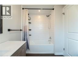 Charming 3 bedroom home w/income potential in desirable Brantford neighbourhood. Boasting laminate flooring throughout the bright and airy main floor, spacious living room w/large window & cozy fireplace, perfect for relaxing. Walk into the radiant dining room combined w/kitchen area, ideal for entertaining and casual dining! Kitchen features pot lights for ample lighting and a modern touch. Master bedroom retreat with walk-out to balcony - enjoy your morning coffee or evening sunsets. Two additional generous bedrooms w/plenty of natural light. Spacious basement with separate entrance - easily convert to inlaw suite or rental apartment for extra income! HVAC, roof & washer & dryer all 3 years new. (id:46441)