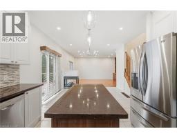 Welcome to 100 Springstead, an exceptional corner-lot home offering space, style, and thoughtful upgrades throughout. This 5 bedroom, 4 bathroom residence impresses from the moment you arrive with an exposed aggregate driveway, stamped concrete covered wrap-around front porch, and a double garage finished with epoxy chip flooring. Inside, the open concept main level is anchored by a striking three-sided fireplace connecting the kitchen and living room, complete with granite countertops, stainless steel appliances, a built-in entertainment unit, and solid oak staircase. Main level laundry, central vac, wood blinds throughout, and a seamless flow make everyday living effortless. The primary bedroom retreat offers a private ensuite and two walk-in closets with custom built-ins, providing exceptional comfort and storage. Step outside to enjoy a wrap-around balcony that can be accessed directly from the front bedroom through elegant French doors. In the backyard you will find a large deck ideal for entertaining or relaxing and a private yard with shed. A Rainbird automatic sprinkler system will make sure the grass is always green. The finished basement adds flexible living space, while 4K cameras, alarm system, and fully hardwired internet provide peace of mind and modern convenience. Located minutes from Fifty Point Conservation Area, Lake Ontario shoreline, parks, and trails, with quick access to the QEW, Winona Crossing, Costco, restaurants, and local shops. This is a home designed for comfort, connection, and an elevated lifestyle. (id:46441)