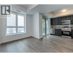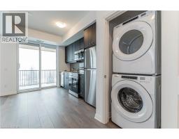 One of the nicest one bedroom plus den floor plans featuring 2 balconies, one off the bedroom and one off the living room adding an extension to your living space. Tied together seamlessly with upgraded wide plank flooring throughout. The 4 piece spa bath is beautifully finished with dark onyx porcelain tiles. The kitchen comes with 4 stainless steel appliances and a full size stackable washer and dryer. Amenities all within arm's reach. Get your morning pick-me-up at Starbucks or Tim Hortons just steps from your front door. Countless dining options await. With easy access to transit including the LRT and bus stops you can effortlessly explore the City or commute to work. The convenience of Highway 7/8 is also only minutes away. Stock up on groceries at Sobeys across the street, stroll to the bank or explore the vibrant St. Jacobs Farmers Market just down the road - it's all within your neighbourhood. With continuous development and investments in this area it's becoming a hotspot. With its unbeatable location, efficient design and access to a host of amenities, The Jake Condos provides the ideal backdrop for everyday living. Building features include the community mailboxes with large parcel receiving area, professionally designed landscaping with an irrigation system, common lobby lounge and semi-private lounge area and a contemporary peloton studio/gym. Tenants pay for hydro/water/water heater rental. This unit comes with one underground parking spot EV#58 with EV access. Available Now! (id:46441)