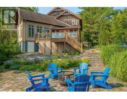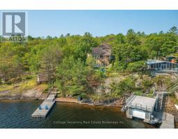 A rare opportunity to own a truly exceptional retreat+investment on the coveted south shore of Lake Muskoka. Welcome to Muskoka Blue, an extraordinary offering that combines modern sophistication with the timeless beauty of Muskoka's natural landscape. A strong history as a very successful rental property with proven revenue allows the next owner to seamlessly start making a return on their investment from day one. Ideally situated less than two hours from the GTA, this stunning cottage delivers both accessibility and a world away feeling for an unrivaled sanctuary for those seeking the finest in waterfront living. Showcasing over 2,700 square feet of thoughtfully designed living space, Muskoka Blue features 5 bedrooms and 3 bathrooms, perfectly appointed for relaxed, elegant entertaining. Soaring 21-foot vaulted ceilings and expansive walls of glass frame breathtaking, long lake vistas, creating seamless indoor-outdoor connections. The great room, anchored by a grand stone fireplace, is both impressive and inviting, while the screened Muskoka room and extensive decking further extend the living spaces into the natural surroundings.The chefs kitchen is the heart of the home, offering a large centre island, Quartz countertops, and premium stainless steel appliances the ideal setting for gathering with family and guests. Outdoors, a private cantilevered dock invites endless exploration across Muskoka's famed Big Three Lakes Muskoka, Rosseau, and Joseph with exceptional opportunities for boating, swimming, and water sports. Designed for memorable entertaining, the generous outdoor granite fire pit area, al fresco dining spaces, and thoughtful landscaping ensure privacy and tranquility. Offered fully furnished, Muskoka Blue is a true turnkey property, offering immediate enjoyment of all Muskoka has to offer. Rental income history available upon request. (id:46441)