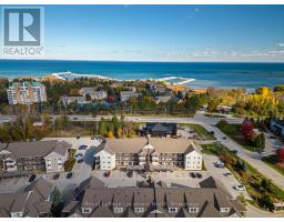 Welcome to your perfect four-season retreat in Collingwood! This modern, open-concept 2-bedroom, 2-bath condo offers effortless main-floor living with no stairs-ideal for those seeking convenience, comfort, and a carefree lifestyle. Thoughtfully designed, this popular floor plan features neutral, timeless finishes and a bright, airy layout that flows seamlessly from the kitchen through to the living and dining areas. The inviting great room includes a cozy gas fireplace for those crisp winter evenings and walkout access to a private patio-perfect for morning coffee or après-ski relaxation. The spacious kitchen offers plenty of counter space and open sightlines that make entertaining easy. Both bedrooms are a good size, with the primary suite featuring an ensuite bath and closet space. Enjoy the convenience of an in-suite laundry room and an oversized locker ideal for bikes, skis, or outdoor equipment. Set in one of Collingwood's most desirable condo communities, this property is designed for year-round enjoyment. In summer, take advantage of the heated outdoor saltwater pool, scenic walking trails, and quick access to Georgian Bay just across the road. In winter, you're only minutes from Blue Mountain's world-class ski slopes, cozy cafés, and boutique shopping in downtown Collingwood. Additional amenities include an exercise room, kayak storage, and plenty of visitor parking. With affordable condo fees that include water and sewer, this low-maintenance home offers unbeatable value for those seeking a weekend getaway, full-time residence, or smart investment in a thriving four-season community. Experience the best of Collingwood living-where golf, skiing, trails, and waterfront adventures are all at your doorstep. Move in and start enjoying the relaxed, active lifestyle you've been dreaming of! (id:46441)