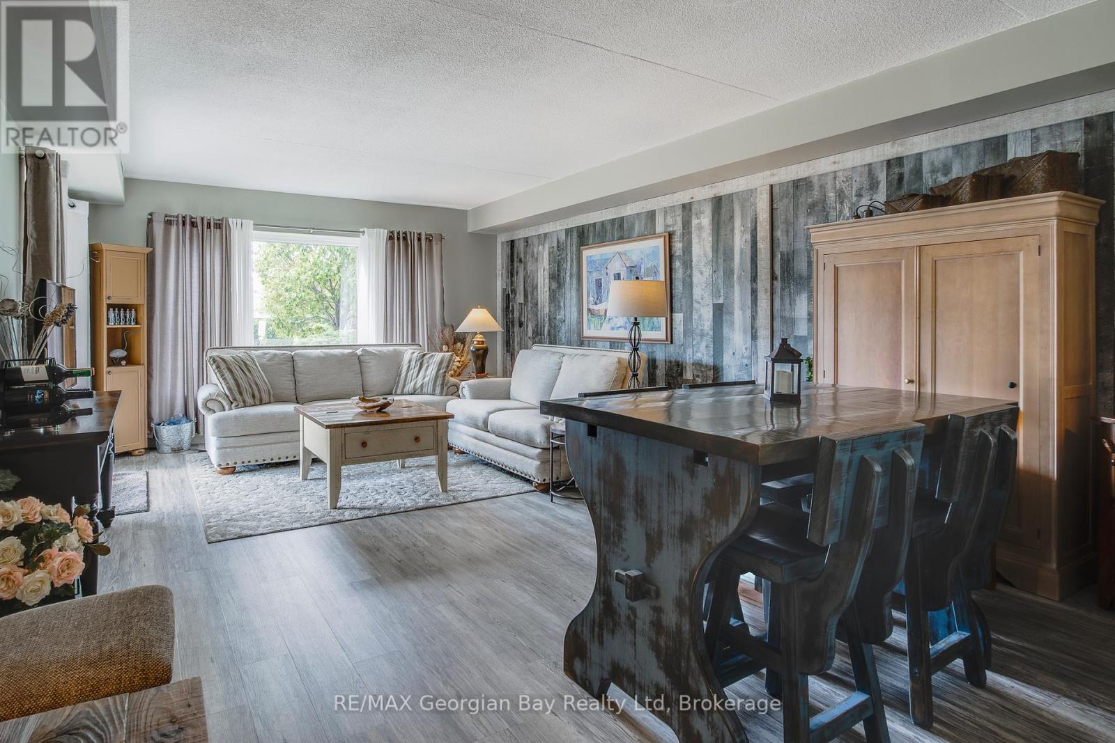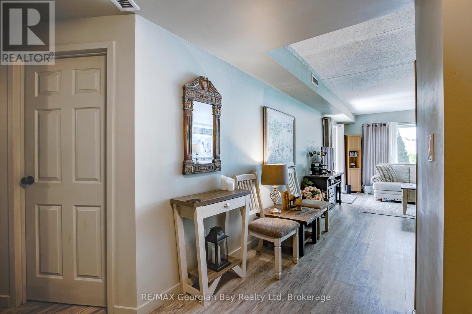 This Character-Filled Suite Is Much More Than Meets The Eye With Thoughtful Improvements, An Indoor Parking Space, Plus A Locker For Your Additional Storage Needs. Here you enjoy the full advantage of the quieter end of this well-maintained building, away from the hustle and bustle of the foyers, yet very close to your garage entrance and steps from an extra parking spot outside for guests. Your patio door has keyed-entry for seamless access to the outdoors, great for pets and your active lifestyle so you can come and go directly from your unit instead of relying on an elevator. And your covered patio is a sheltered place with plenty of surrounding greenery and a tranquil feel. You also have the use of a roof-top deck for larger gatherings and barbeques. A neutral decor allows you to personalize the space to suit your taste, and an interesting and efficient floor plan has great sightlines to nature outside your windows. Be situated in White Sands across from Georgian Bay in a desirable Penetanguishene neighbourhood of multi-million dollar homes, and a hop-skip-and-jump from our vibrant downtown shops, restaurants, cultural centres... Walk, ride or ski along our beautiful waterfront, for outdoor fun all year around. Close to marinas, curling club, hospital, golf courses and all the other amenities our wonderful shoreline community has to offer you. Minutes to Midland, commuting distance to Barrie, Wasaga Beach, Orillia, and 90 minutes to the Toronto area. Whether this is your first home or a downsize, here is a rare opportunity for you to enjoy care-free condo living at its best! Get it before it's gone! (id:46441)