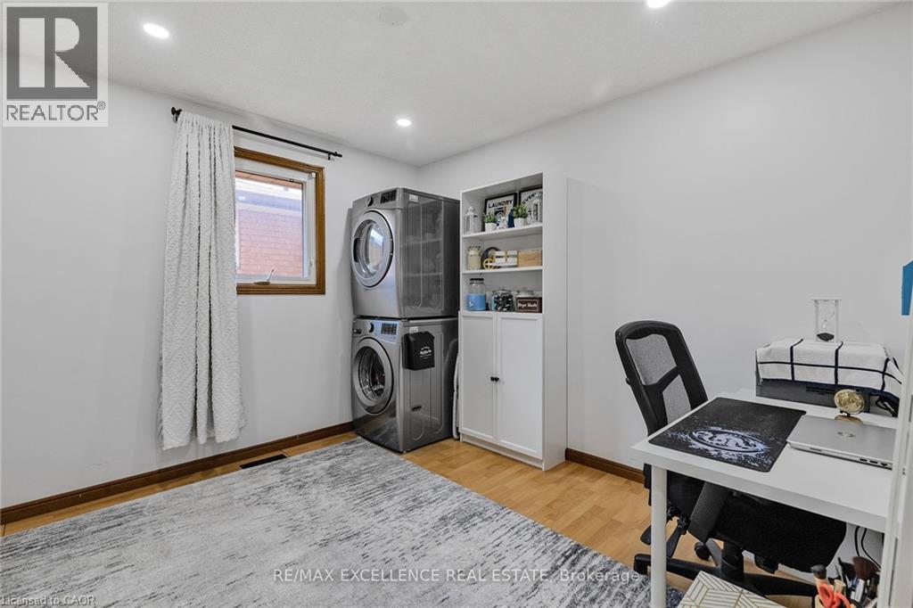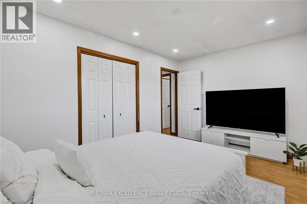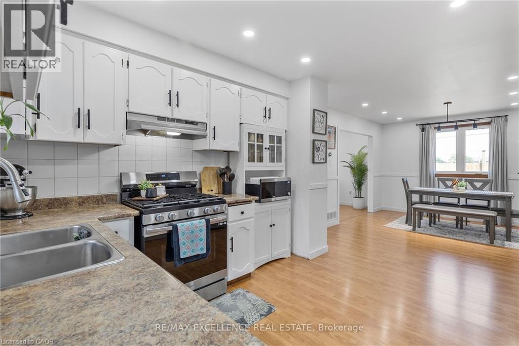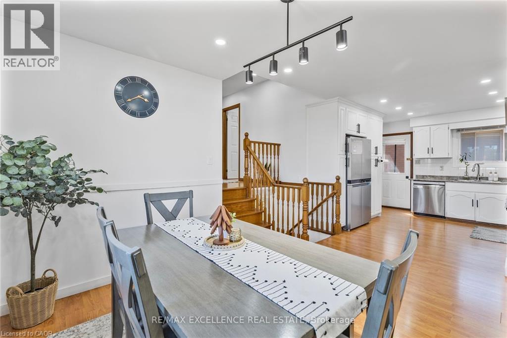Welcome to 102 Juniper Drive, a well maintained 3-level detached backsplit situated on a massive premium corner lot in a desirable Stoney Creek neighborhood. This spacious 5 bedroom, 2 bathroom home features a functional layout with a fully finished second level offering ample space for extended family living or future in-law suite potential. The lower level remains unfinished, providing an excellent opportunity to customize additional living space or rental setup. Recent upgrades (within past 2 years) include newer appliances (fridge, gas stove, dishwasher, washer & dryer), energy-efficient pot lights on both main and second levels, fresh paint with feature wall accents, modified kitchen and bathrooms, new fence and enhanced security with cameras and video doorbell. The finished second level includes two additional bedrooms, updated carpet-free flooring. With a single car garage and a double driveway, this home offers space, comfort, and future flexibility. Located in a family friendly neighborhood close to schools, parks, shopping, and highway access, this is an ideal home for multi-generational living or investment. (id:46441)