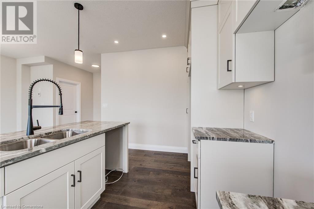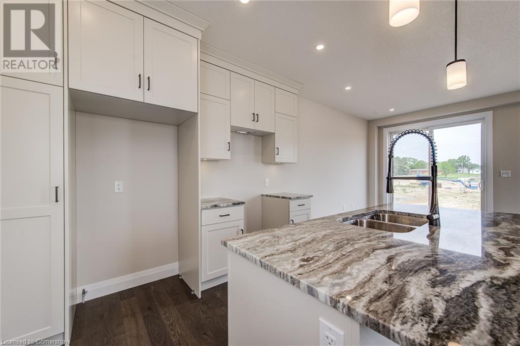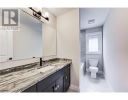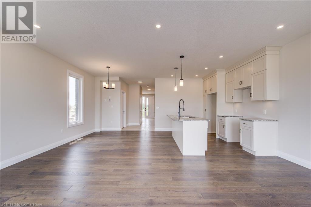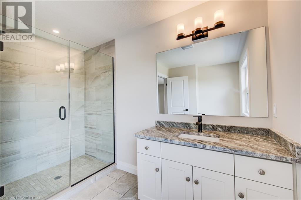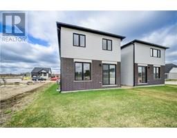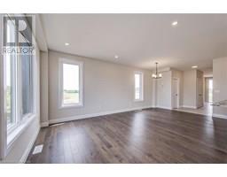Why settle for an ordinary semi when you can own one that feels more like a detached home? The Woodgate C is a stunning, brand new 2 storey semi-detached design only connected at the garage wall offering enhanced privacy, better sound separation, and unbeatable curb appeal. Move in ready and packed with upgrades, this modern home features a bold exterior blend of brick, stone, wood, and vinyl, large windows, a stylish garage door, and a covered front porch that invites you in. Step inside to main floor 9' ceilings, warm hardwood flooring, contemporary lighting, and a neutral colour palette that sets the stage for your personal style. The open concept main level is perfect for entertaining, with a sleek kitchen showcasing stone countertops, clean lined cabinetry, and a large island with breakfast bar seating. Upstairs, the spacious primary suite offers oversized windows, a walk-in closet, and a spa like ensuite with a tiled walk-in shower and glass enclosure. Two additional bedrooms and a full 4pc bath provide space for family or guests, while the upstairs laundry adds everyday convenience. The unspoiled basement includes a 3pc rough-in and egress window, giving you the flexibility to finish it as you like. Additional perks include: Oversized garage with man door and opener, saved driveway, fully sodded yard, soft close cabinetry, central air conditioning, Tarion Warranty and survey all included in the price. Visit the furnished Model Home at 122 Bean Street. (id:46441)