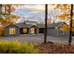 It begins with 2.5 acres of pure privacy! Where the noise fades, the light filters through the trees, & every room reflects a simple belief: home should make life better, not busier. Built in 2021 with intention in every detail, this home balances modern living with natural connection. Four bedrooms, four bathrooms, an attached two-car garage, a fully finished walkout with its own kitchen & private access, & well over $140,000 in upgrades. Quietly luxurious. Functionally brilliant. At the heart of the home, a gorgeous custom kitchen steals the show - quartz counters, an oversized island, gas range with pot filler, soft-close cabinetry & the thoughtful upgrades you actually want behind drawers & doors. Yes, there's a walk-in pantry too. The floor plan flows seamlessly into the dining & living area, where soaring ceilings, a statement fireplace, & walkout access to the deck create an easy indoor-outdoor rhythm. Not a neighbour in sight. A dedicated laundry room keeps daily life organized but out of view. The primary suite gives you space to exhale, with a dreamy ensuite featuring a soaker tub, tiled walk-in shower, double vanity & a generous walk-in closet. On the opposite wing, two guest bedrooms and a full bath complete this level. Downstairs, the walkout level is a full extension of the home, complete with second kitchen, large living area, 4th bedroom, office/gym, full bath & private entrance. For guests, in-laws, investment, or multigenerational living, this space adapts with ease.Outside, nature does the rest. Covered porch mornings. Sunlit deck lunches. Wandering paths. Kids & pets roam free.Only 15 minutes from Huntsville, but it offers the kind of quiet most people spend years trying to find. Tarion warranty. ICF foundation. Fibre optic internet. Central air. Automatic generator. It's more than privacy, more than design, more than comfort. It's all of it, together. (id:46441)