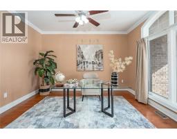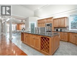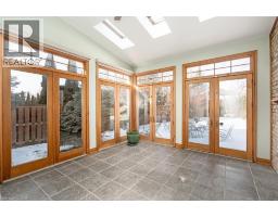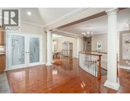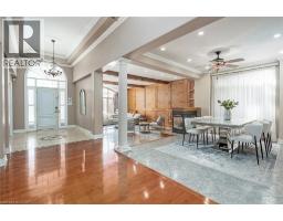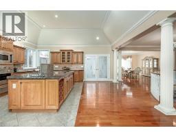 Set on an impressive 75.93 x 177.82 ft lot overlooking breathtaking views of Shorthills Provincial Park, this exceptional 2+2 bedroom, 3 bathroom residence offers over 5900 sq ft of beautifully finished living space designed for both everyday comfort and upscale entertaining. This beautiful bungalow’s exterior is complemented by an interlock driveway with parking for six plus a double car garage. Inside, a grand front foyer with soaring 14-foot ceilings, sets the tone. Elegant formal and casual spaces flow seamlessly, including a sunken living room with wood paneled wall and beams, a three-sided gas fireplace, a refined dining room with hardwood inlay, and a chef-inspired kitchen with vaulted ceilings, premium built-in appliances, expansive island, walk-in pantry and breakfast area. A sun-filled sunroom with skylights and French doors opens to the private backyard patio. The main-level primary retreat features hardwood floors, patio walkout, walk-in closet and a spa-like six-piece ensuite. A second bedroom and bathroom are perfect for guests. The finished lower level is ideal for entertaining or multi-generational living, offering a large recreation room with fireplace, wet bar, wine cellar, office, two additional bedrooms, bathroom, sitting/media room, and a walk-up to the garage. Fully fenced with plenty of green space, this home is minutes to wineries, trails, schools, amenities, and highway access—luxury living surrounded by nature, yet close to it all. (id:46441)