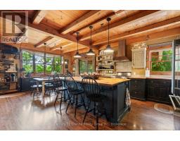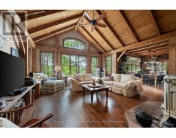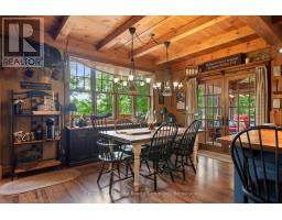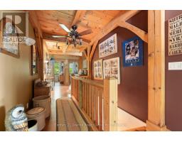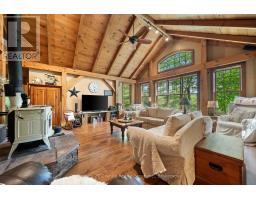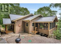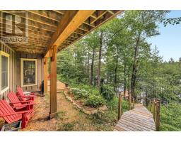 Welcome to your private, custom-built retreat nestled in the woods on the shimmering shores of Contau Lake. This exceptional home features a post and beam style on the main level, with every detail designed to elevate lakeside living. Surrounded by towering mature trees, curated perennial gardens, and natural rock landscaping, this property offers a peaceful, park-like setting with views that are nothing short of magical. Step inside and you'll instantly feel the craftsmanship-from the solid wood doors and trim to the custom cabinetry and built-in features throughout. The spacious open-concept layout is warm and inviting offering modern convenience tucked into timeless design. Enjoy comfort year-round with zoned heating and cooling, whether you're cozying up for winter weekends or hosting summer guests lakeside. The expansive cedar deck overlooks the lake and the steps lead down to an oversized cedar dock, offering all-day sun, shallow entry, and deep water off the dock. Outside, you'll find numerous seating areas thoughtfully placed throughout the landscape, and covered wood storage for those crackling fires under the stars. There's an adorable she/he shed for quiet moments or creative pursuits. The detached 26' x 40' garage plus carport and a huge heated workshop (with its own hydro panel) providing endless potential whether you're into a hobby or a home-based business. Above the shop, a massive loft offers ample storage or room for future hobby space. Contau Lake is located less than 5 km from the conveniences of town and is approximately 139 hectares of clean water and granite shorelines. Excellent for swimming, canoeing, fishing and watercraft of all types, this lake is lightly developed and spring fed. Ready to experience it for yourself? Let's set up a private tour-this is one you don't want to miss. (id:46441)