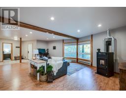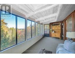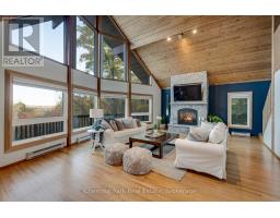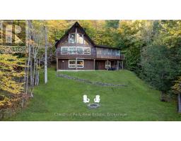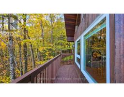 Your Next Muskoka Adventure Awaits Welcome to your dream chalet on coveted Point Ideal Road in Dwight. Nestled on 4.73 private acres, this exceptional 3,000 sq. ft. retreat blends rustic charm with modern comforts, creating the perfect four-season escape.Whether your days are spent swimming in Lake of Bays, skiing at Hidden Valley, or exploring endless snowmobile trails, you will love returning home to the serenity of this forested haven.Step inside to a welcoming foyer with ample space for all your gear. The great room sets the tone with soaring vaulted ceilings and a dramatic floor-to-ceiling stone propane fireplace the heart of true Muskoka living. The bright, open-concept kitchen with built-in appliances flows seamlessly into the dining area and out to a screened-in Muskoka room, ideal for summer dinners under the stars. A BBQ deck offers the perfect spot for casual gatherings overlooking the woods.The main floor features two spacious bedrooms and a full bathroom, ideal for family, guests, or multi-generational living. Upstairs, a private loft-style primary suite offers treetop views and a spa-inspired ensuite with Jacuzzi tub, water closet, and walk-in closet.The walkout lower level redefines basement living with high ceilings, a generous family room, an additional bedroom and bathroom, plus a sauna your personal après-ski or après-sun retreat. A newly installed pellet stove adds cozy, efficient warmth throughout.Enjoy peaceful woodland views, with seasonal glimpses of Lake of Bays, or take a short stroll down the road to swim and fish in its pristine waters. Point Ideal is quiet and perfect for long walks with your furry friends.This is more than a home it is a Muskoka lifestyle.Bonus opportunity: the adjoining 4.92-acre lot is also available for purchase at $239,999 + HST. (id:46441)