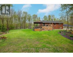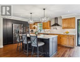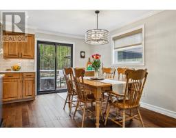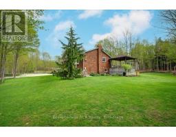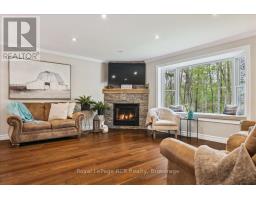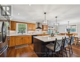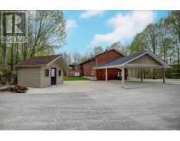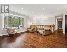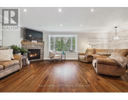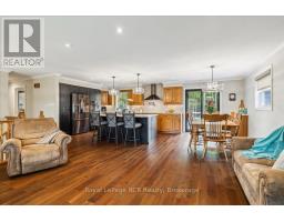 Tucked away on a picturesque 2-acre lot, this fabulous raised bungalow is your own private escape, where comfort, style, and nature come together beautifully. Surrounded by mature trees and lush landscaping, this home offers 4 spacious bedrooms, 2 full bathrooms, and a layout that's perfect for both everyday living and weekend entertaining. The main level impresses with rich cherry hardwood flooring and a bright, open-concept design that flows seamlessly from the living room, complete with a cozy fireplace, to the dining area, which walks out to a large deck and covered hot tub. The kitchen is a true showstopper, featuring custom Durnin cabinetry, gleaming quartz countertops, a double wall oven, induction cooktop with pot filler, and a generous island with seating for casual meals or evening chats. The primary bedroom offers a serene retreat with ensuite privilege to a stunning 5-piece bathroom, complete with a custom marble shower and soaker tub that'll have you feeling like you've checked into a boutique spa. Downstairs, the lower level is just as inviting, boasting a spacious family room with its own fireplace, a stylish wet bar, and a walkout to the carport, perfect for cozy nights in or hosting friends. Outside, the magic continues with a peaceful pond, two handy sheds, and a dream 500 sqft. garage/workshop, fully insulated, heated, wired with hydro, and topped off with a 10-foot garage door. Whether you're into cars, crafts, or just need the extra space, this one checks every box. With plenty of parking and room to roam, this property offers the peace of country living with all the extras. Its not just a home, it's a lifestyle! (id:46441)