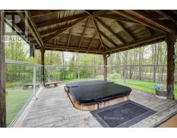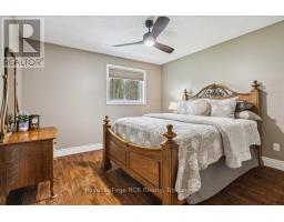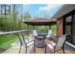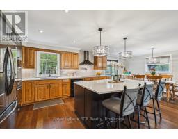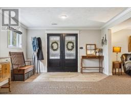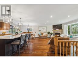 Experience the perfect blend of privacy and modern craftsmanship on this stunning 2-acre estate, where nature and luxury converge. This meticulously maintained raised bungalow serves as a private sanctuary framed by mature trees, lush landscaping, and a tranquil ornamental pond. Inside, the bright and open concept layout is anchored by rich cherry hardwoods and a chef's dream kitchen, boasting custom Durnin cabinetry, quartz countertops, and high-end finishes like a double wall oven and induction cooktop. The home features notably large bedrooms, including a primary suite with semi-ensuite access to a stunning five-piece bathroom complete with a custom marble shower and deep soaker tub. The living space extends to the lower level walkout, which offers a convenient wet bar, a second fireplace, and a spacious, functional entry that provides seamless access directly from the carport. Outside, the property features an entertainer's deck with a covered hot tub and the ultimate "bonus" in a 500 sqft. heated and insulated workshop with a 10-foot door. From the quiet morning coffee on your sprawling deck to the limitless potential of the heated workshop, this property isn't just a place to live, it's the private retreat you've been waiting to call home. (id:46441)