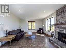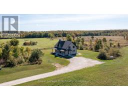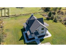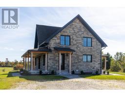 Impressive custom built 2 storey stone home on 65 acres. An abundance of natural light flows through the oversized windows and doors with country views from every room. While the covered front porch leads to the foyer, the mudroom entrance is 11x18 with lots of storage, laundry area and powder room. As you enter the living areas, the quality of craftsmanship is evident in the 8' solid oak doors, trim and staircase. The spacious kitchen features lots of cabinetry with a great working layout, an oversized island with 2nd sink and commercial grade appliances. The dining area is open to the living room where you'll find a wood burning fireplace. On the second level there is a large landing suitable for an office or sitting area (12x17). In addition to the full bathroom and 2 spacious bedrooms you will find a luxury suite that includes a spa-like ensuite and walk-in closet. The finished lower level is complete with a family room, office/den, gym/bedroom, 3 piece bath and cold storage room. Built in 2024, this custom home features the highest quality in construction, finishes and comfort. ICF construction from the footings to the roof, in-floor heat in basement, forced air propane and a/c, extensive built-ins in closets, and so much more. Lots to explore on the land including 2 ponds. This exceptional property is sure to impress. (id:46441)