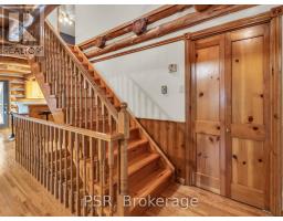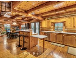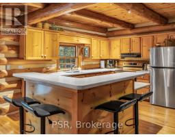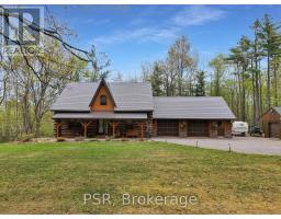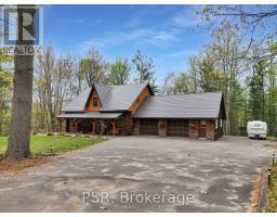 Welcome to this truly exceptional, custom-built log home, lovingly maintained by its owners. Nestled at the end of a quiet street on nearly 1.5 acres, this property offers wonderful privacy and timeless Muskoka charm. Featuring 3 bedrooms and 3 fully finished levels, including a bright walkout basement, this home showcases quality craftsmanship throughout, from the beautiful round log construction to thoughtful updates like a steel roof in 2015. The property also includes a double car garage, a spacious paved driveway, and two handy storage sheds. Inside, youll immediately feel the warmth and character of the impressive log interior. The main floor offers a seamless flow from the inviting living area with beautiful wood burning stone fire place to the large back deck, perfect for outdoor dining and entertaining. Upstairs, youll find three comfortable bedrooms, while each level of the home is conveniently served by a generously sized bathroom. The lower level walkout basement provides excellent additional living space, featuring a cozy rec room, a home office, and direct access to the private backyard. Whether youre relaxing indoors or enjoying the natural surroundings, this home delivers a lifestyle of peace, comfort, and character. All of this, just minutes from launching your boat on beautiful Kahshe Lake and only 10 minutes to the Town of Gravenhurst, where you'll find shopping, dining, and everyday essentials  plus easy access to explore the open waters of Lake Muskoka. If you love log homes, this one will exceed your expectations. (id:46441)