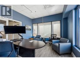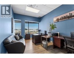 Bright second-floor walk-up office with excellent natural light and QEW exposure. The 2,295 sq ft unit includes five private offices, one boardroom, open work area, kitchenette, and in-suite washroom. Ideal for professional users seeking a functional layout with strong visibility. (id:46441)