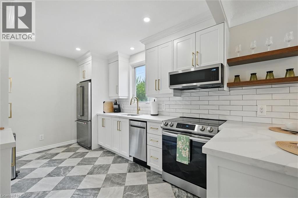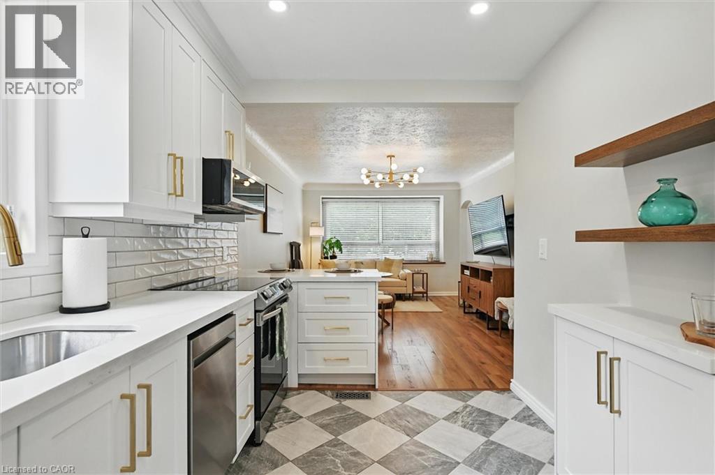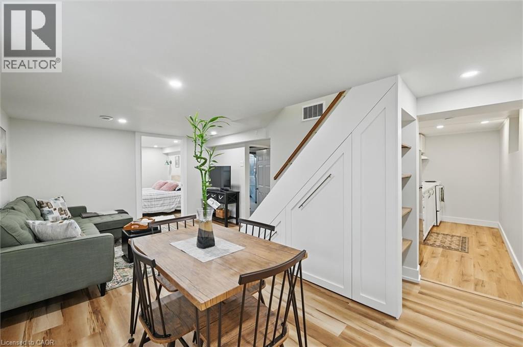 This sunlit 3-bedroom bungalow, tucked away on a quiet cul-de-sac in a family-friendly Hamilton neighbourhood, offers the perfect balance of lifestyle and income potential. Upstairs, the open-concept living space features large windows, modern upgrades, and fresh finishes throughout—creating a bright, inviting atmosphere. The home has been freshly painted inside and includes a beautifully updated front porch and a covered back deck, ideal for relaxing or entertaining year-round. Downstairs, a fully finished and soundproofed 1-bedroom suite with a private entrance provides flexibility for multi-generational living, in-law accommodation, or potential rental income. Recent upgrades include a new electrical system, furnace, and updated roof—bringing peace of mind and long-term efficiency. The exterior offers just as much functionality, with a 3-car private driveway and an oversized detached garage—perfect for parking, extra storage, or use as a hobbyist’s workshop. Whether you’re investing for the future, downsizing into equity, or purchasing your first home with built-in mortgage support, this property checks every box. With 3 bedrooms, 2 bathrooms, 2 full kitchens, and thoughtful upgrades throughout, this fully detached home is located just steps from parks, schools, shopping, and quick highway access via the 403. Whether you're house hacking, hosting, or holding for the long term, this home delivers stable value, modern comfort, and future upside—all within a peaceful pocket just beyond the GTA hustle. (id:46441)