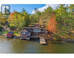 Welcome to a rare family retreat on the shores of Pine Lake. Cherished by one family, this year-round cottage is ready for new memories to be made. With 6 bedrooms and 4 bathrooms, there is space for everyone kids, grandkids, and friends alike. The spacious main floor living, kitchen, and dining areas invite laughter, long dinners, and evenings spent together. A front sitting room, framed by a large picture window, invites uninterrupted lake views, making it the perfect spot for morning coffee. For added convenience, there is a separate laundry room as well as the comforts of a furnace and central AC, ensuring ease and comfort no matter the season. Outside, you'll find just over 170 feet of waterfront, with deep water off the dock, perfect for swimming, boating, and waterfront fun. The attached single-slip boathouse with accommodation above offers additional guest space or a private lakeside escape. At the same time, an inclinator from the parking area to the main entrance ensures easy access for everyone. The property also includes ample parking and a detached 2-car garage. A separately deeded 8+ acre parcel across the road offers potential for future development opportunities, adding even more value and flexibility to this special package. Located minutes from Gravenhurst and a short drive from the GTA, this beloved cottage is a solid, well-maintained building just waiting for a new family to bring their vision and create the next chapter of its story. (id:46441)