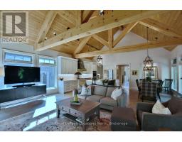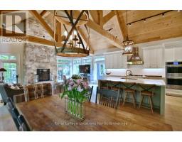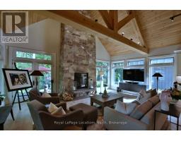 Experience exceptional craftsmanship & timeless elegance in this extraordinary custom-built stone residence, perfectly situated in the prestigious community of Lora Bay in The Blue Mountains. Known for its golf course, private beachfront & year-round recreational amenities, Lora Bay offers a lifestyle of leisure & sophistication, just minutes from boutique shops, fine dining & ski hills. From the moment you step into the grand foyer, you are welcomed by expansive sightlines to the impressive great room, where soaring cathedral ceilings & a magnificent floor-to-ceiling stone wood-burning fireplace set the tone for both refined entertaining & cozy gatherings. Flooded with natural light, the open-concept design seamlessly connects the principal living spaces, creating an inviting atmosphere that balances luxury with comfort. The custom-designed kitchen is truly one-of-a-kind, featuring a striking island with ample seating, bespoke cabinetry & premium finishes that will delight both chefs & entertainers alike. A spacious dining area overlooks the beautifully landscaped grounds, enhancing the homes natural connection to its serene surroundings. The main level primary suite provides a private retreat with generous proportions, a spa-inspired ensuite & thoughtfully designed details that elevate everyday living. Upstairs, 2 beds, office & a full bath offer comfort & privacy for family or guests. The fully finished lower level is complete with 1 bed, full bath & dressing room, a custom wine room & an expansive theatre/family room anchored by a cozy gas fireplace. Beyond the home, Lora Bay offers an unparalleled lifestyle. Residents enjoy access to golf, kayaking, walking trails, a members-only lodge & pristine beaches. Winter brings nearby skiing, snowshoeing & après-ski gatherings, making this community a true 4-season destination. (id:46441)