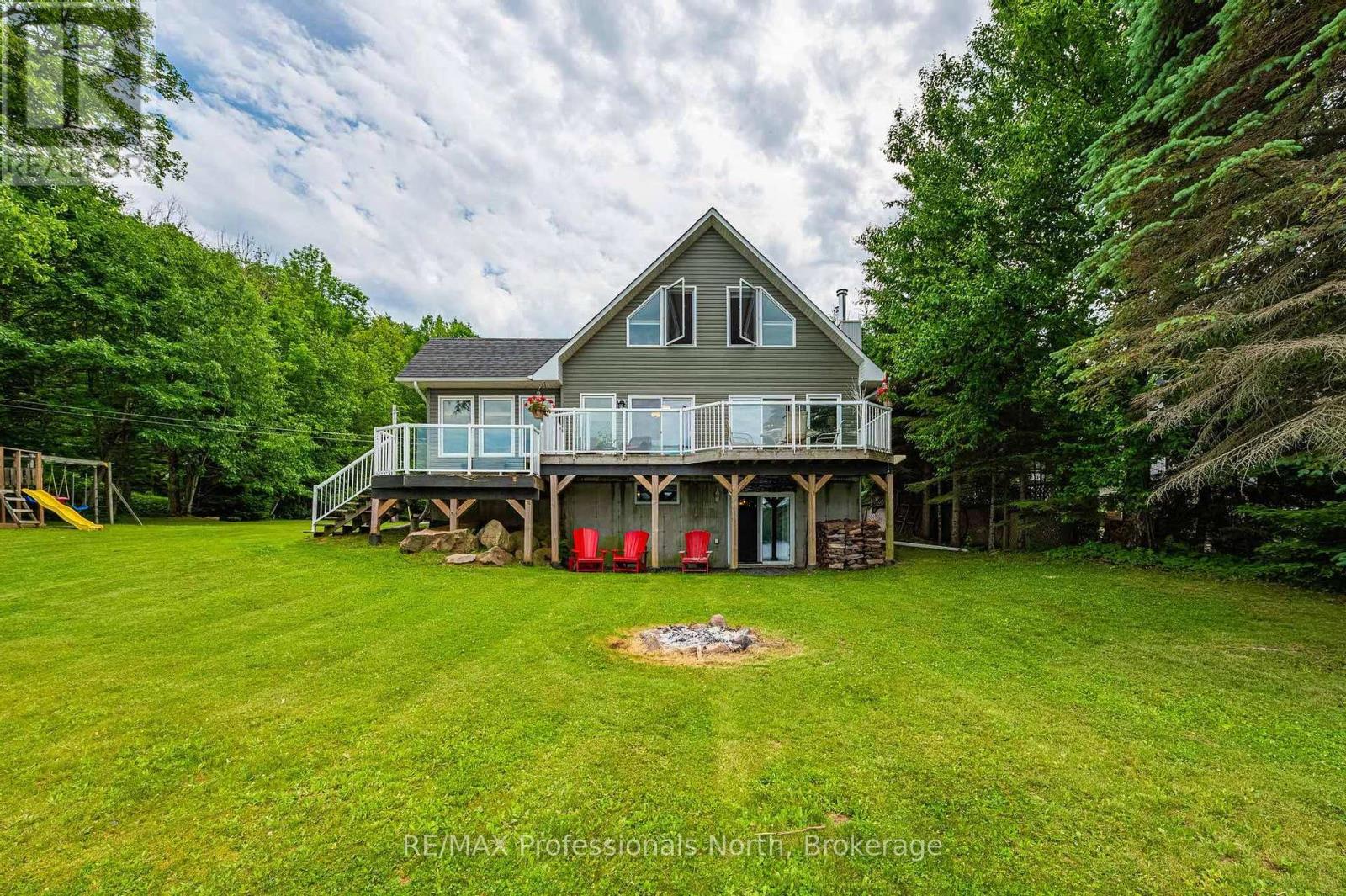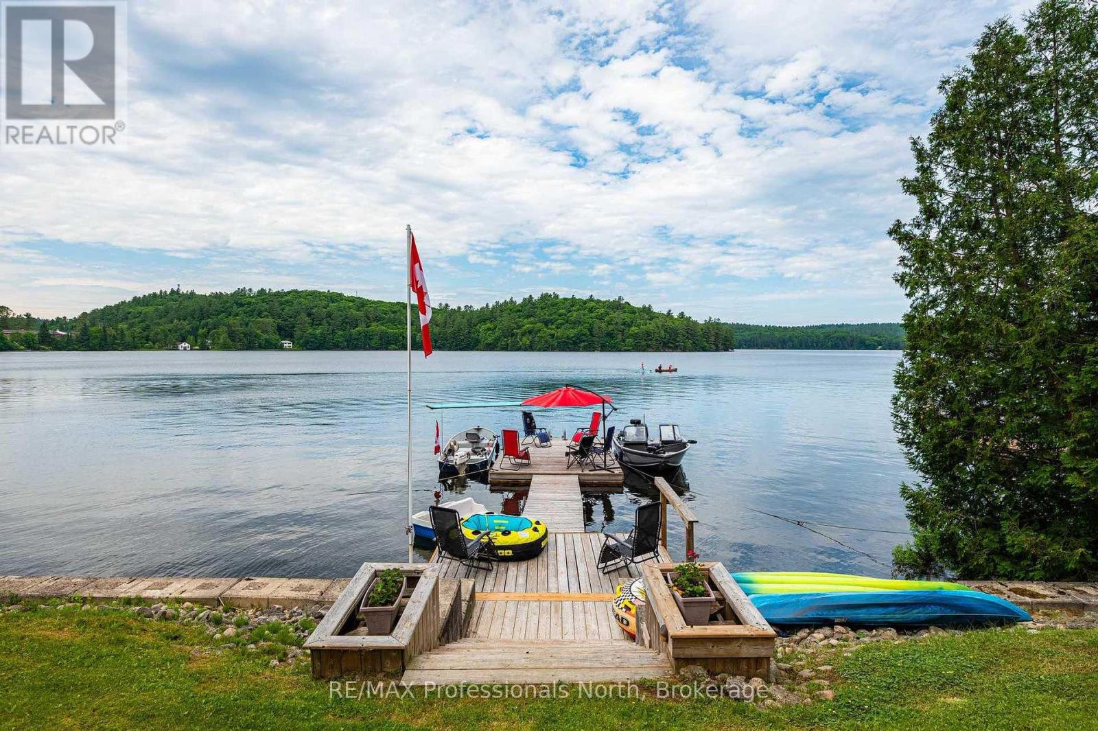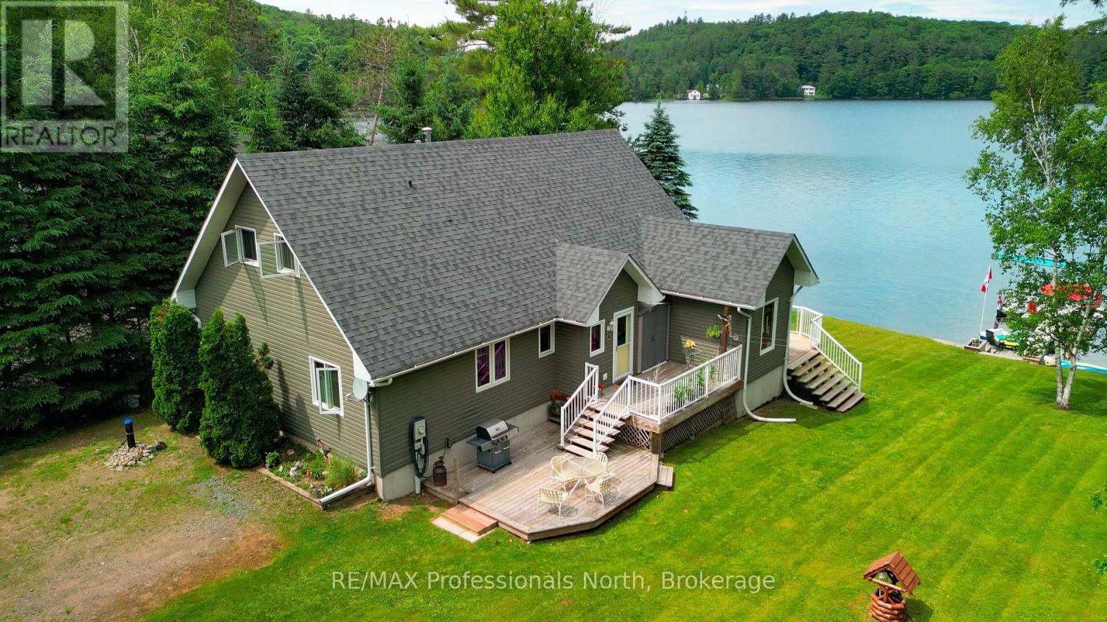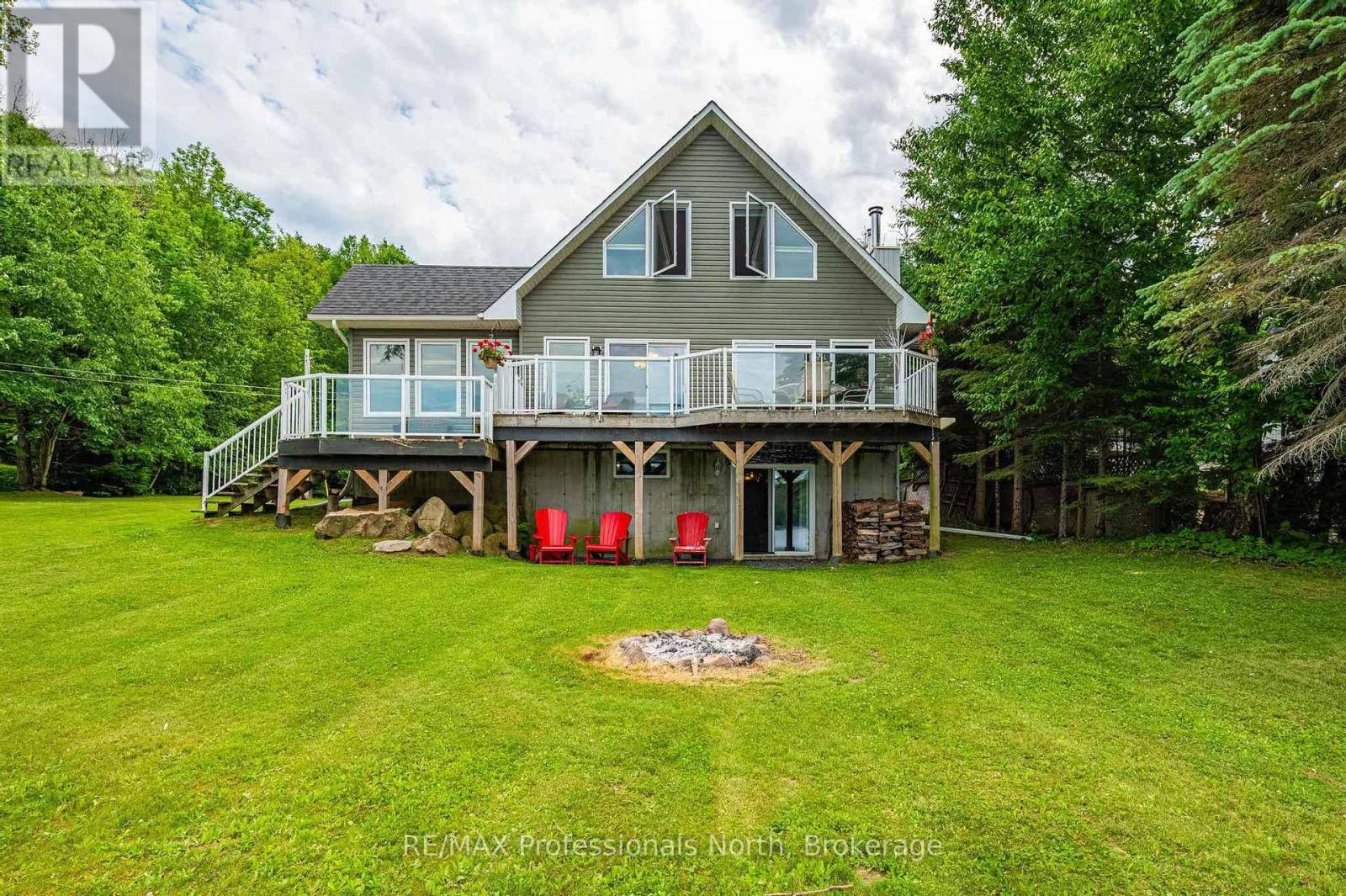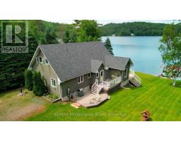 Make this your getaway on stunning St. Nora Lake! Beautifully maintained 4 bedroom, 4 bathroom year-round home or cottage sits on a large150 feet of pristine waterfront, offering breathtaking views from the full length front deck. Whether you're sipping your morning coffee or entertaining guests, the panoramic lake views are sure to impress. The home or cottage features a spacious and light filled, open concept layout with plenty of room for family and friends. A separate bunkie provides additional sleeping space or a cozy retreat for guests, while the detached garage with a loft offers ample storage or potential for a studio or hobby space. St. Nora Lake is part of a desirable two lake chain with Kushog Lake, offering miles of boating, fishing and water recreation. Outdoor enthusiasts will love the proximity to snowmobile, ATV, hiking, and cross-country skiing trails, making this a four-season paradise. This can be your opportunity to own a piece of Haliburton Highlands waterfront with endless potential for family fun, rental income, or peaceful lakeside living. (id:46441)