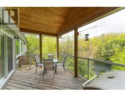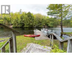 This immaculately maintained 4-bedroom, 3-bathroom home is nestled on the tranquil shores of the Muskoka River, just 15 minutes from Bracebridge. Ideal for a family, this spacious 3,000 sq ft year round home offers the perfect balance of comfort, function, and waterfront fun. The oversized 28x25 detached garage features screened-in garage doors. Perfect for projects, storage, or enjoying the breeze bug-free. Step inside to discover a bright and inviting interior, featuring a generous primary suite with walk-in closet with private ensuite bathroom. The flexible second living space could be perfect for a kids playroom, home office, or personal gym. The walkout basement features a second kitchen, offering the potential to create private guest quarters. Outside, enjoy two back porches overlooking the river, a detached double garage, a drive-through wood shed, and the bonus of your very own pontoon boat included.The sandy shoreline is perfect for children to play, while a diving board offers a fun way to cool off on hot summer days. With seasonal neighbours on both sides tucked in a quiet, peaceful setting, this property is a rare find offering year-round enjoyment and classic Muskoka charm. ** This is a linked property.** (id:46441)