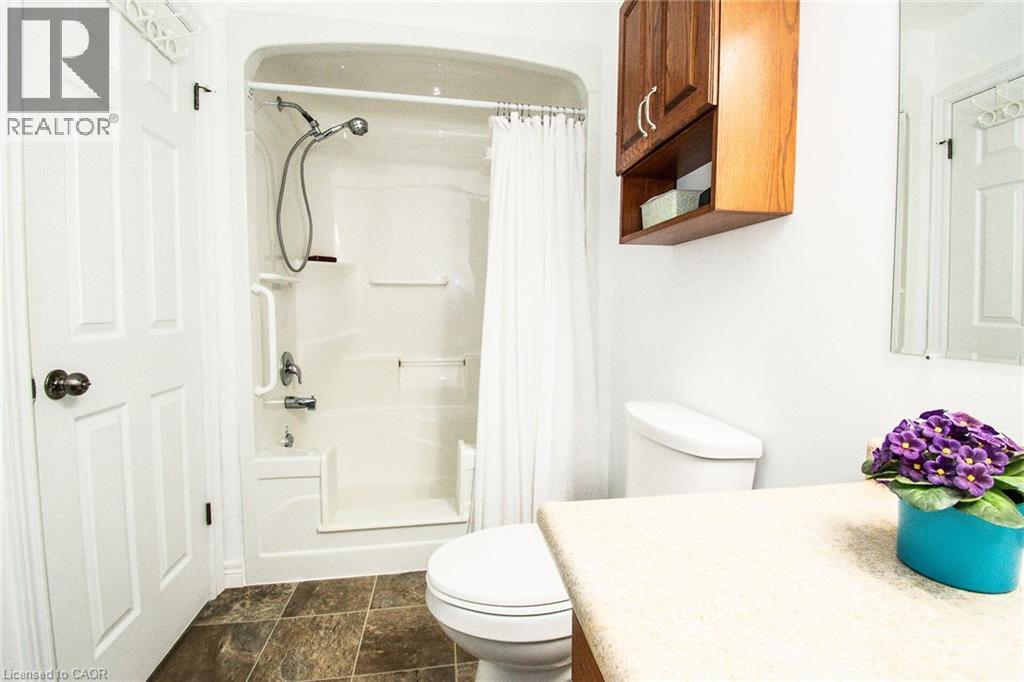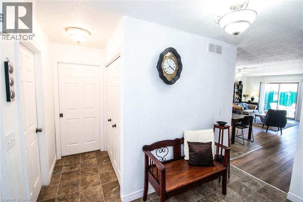 All brick semi-detached one floor home with great location. Short walk to downtown, shopping, banking, and library. 2+ bedrooms, 2 baths with an open concept main floor kitchen and living room off living room patio door to patio and rear yard. Main floor laundry, covered front porch-garage with inside access. Lower level finished with rooms which could be used as bedrooms- 3 piece bath and large games room. Double wide concrete drive and central air compliment this home. (id:46441)