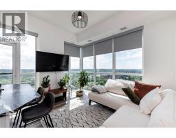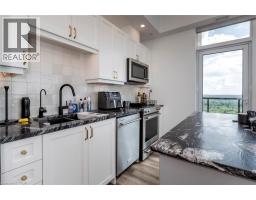 AVAILABLE NOVEMBER 1ST! CAN BE LEASED FURNISHED! Welcome to #2708-108 Garment, an exquisite corner penthouse suite offering unbeatable sunset views and unparalleled luxury. This 2-bedroom, 2-bathroom residence, complete with parking and locker, features unique custom upgrades that are sure to leave a lasting impression. With 10-foot ceilings throughout, the welcoming entryway leads you to floor-to-ceiling windows that showcase stunning 180-degree views of Kitchener-Waterloo. Boasting over $35,000 in upgrades, this space is designed to impress. The custom kitchen includes high-end KitchenAid appliances, including a French door fridge with a water line, and numerous bespoke upgrades not offered by the builder. You'll appreciate the imported Italian backsplash, premium granite island with four large pot drawers, and elegant gold cabinet handles. Additional upgrades include custom light fixtures, motorized blackout blinds, feature wall paneling, and a built-in desk and mantel for optimal space utilization. The main bedroom is spacious and inviting, bathed in natural light with breathtaking sunset views, and features an upgraded walk-in closet and ensuite bathroom. The second bedroom, perfect as an office, includes floor-to-ceiling windows, allowing you to enjoy the cityscape from all angles while you work from home. Building amenities enhance your lifestyle with a pool, fitness center, party room, and rooftop terrace complete with a basketball court and dog run. Located just steps from the LRT, Google/Technology hub, and downtown Kitchener, convenience and luxury combine seamlessly. Book your showing today and envision yourself living in this one-of-a-kind penthouse unit! (id:46441)