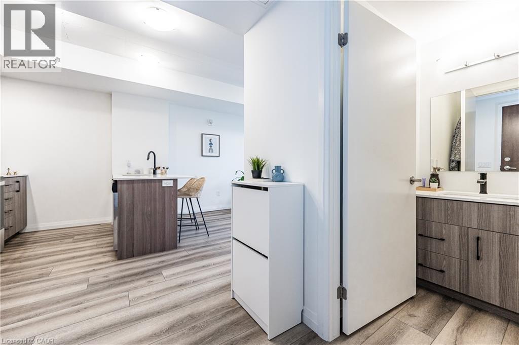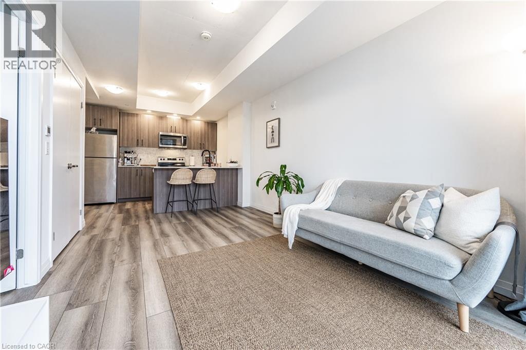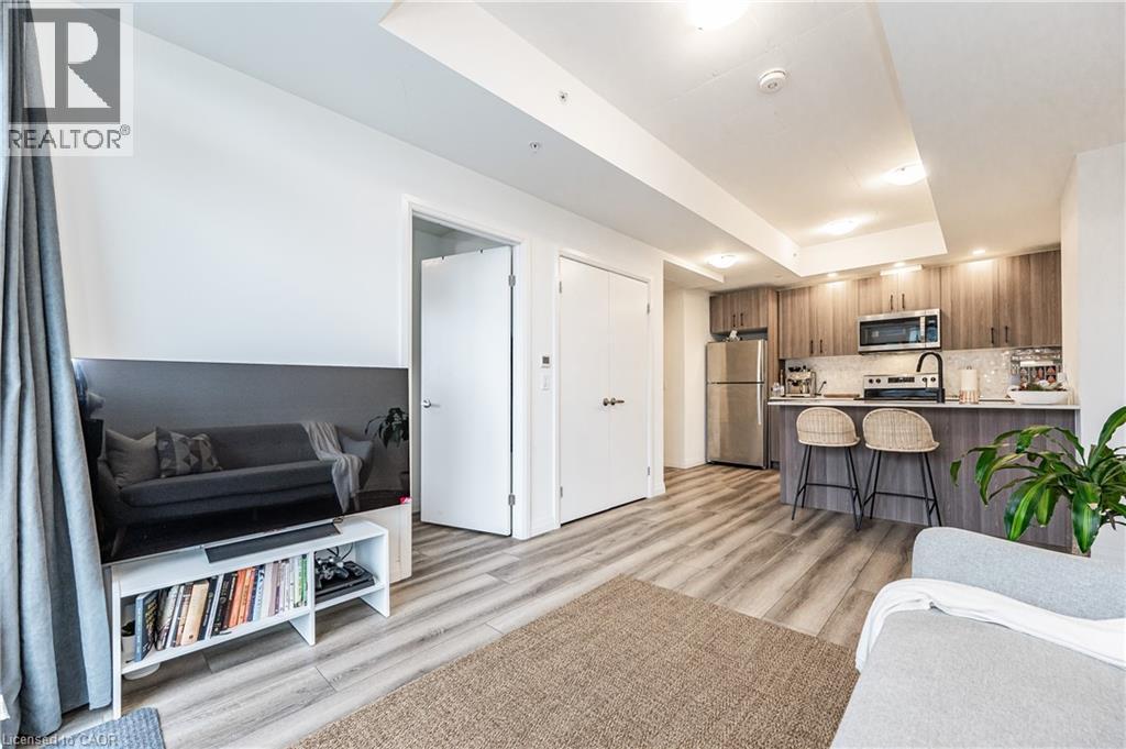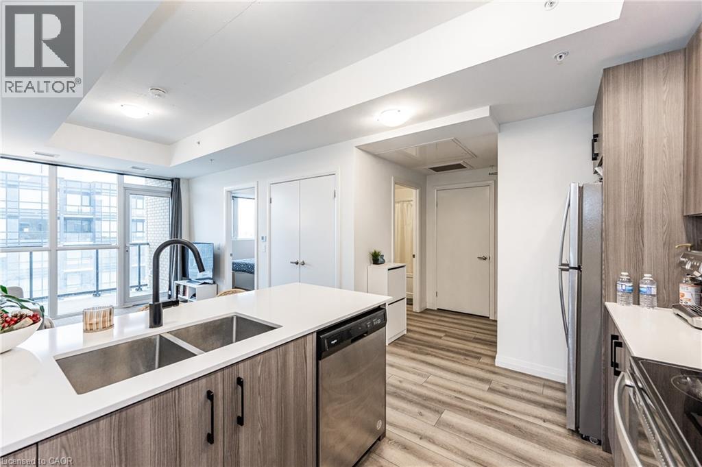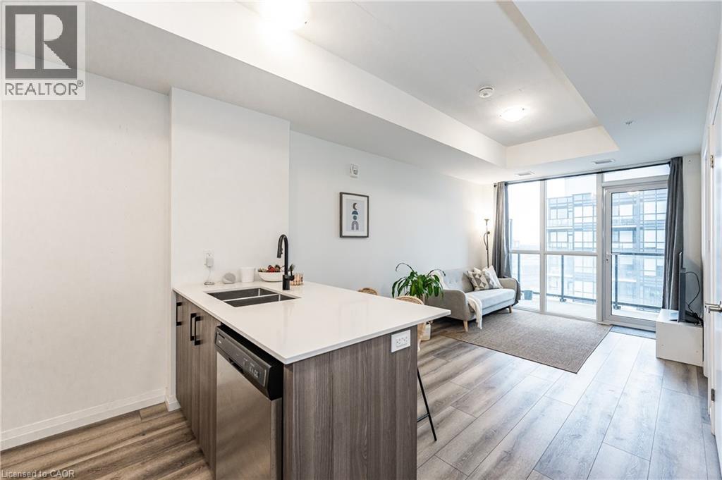 HIGHLY SOUGHT-AFTER GARMENT CONDOS! Act quick before it's gone! This one bed, one bath unit features is available February 1st. Comes with one underground parking space. Bright kitchen with clean lines, breakfast bar, premium flooring, great sized bedroom, 4pc bathroom, in-suite laundry, and balcony. With some of the nicest finishes selected, you will feel at home the moment you walk in! The building offers some of the best amenities a building offers in Downtown Kitchener: rooftop pool, fitness room, party room, relaxation area, yoga spot, pet run, urban park, sport court, it's no wonder this is the place to be. Located steps to downtown Kitchener, Google, KPMG, Deloitte, future LRT hub, Go Train, D2L, Communitech, School of Pharmacy, School of Medicine, Victoria Park, shops, restaurants, entertainment and so much more! Rogers Base Internet, heat, a/c and water included. Tenant to pay hydro, cable/tv, tenant's insurance. *Photos shown are prior to the current tenant taking possession. (id:46441)