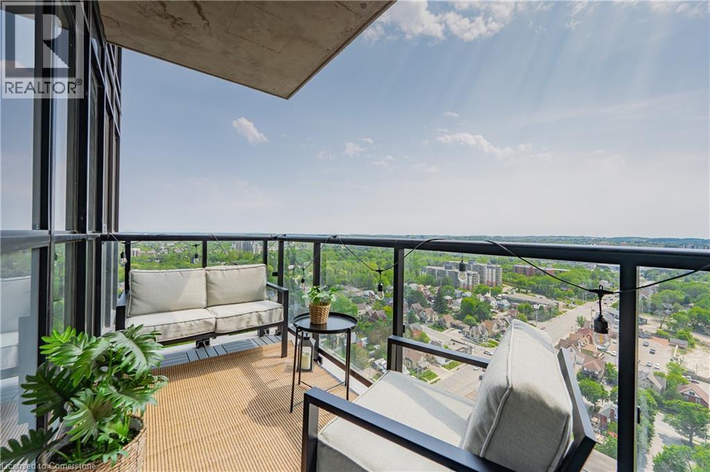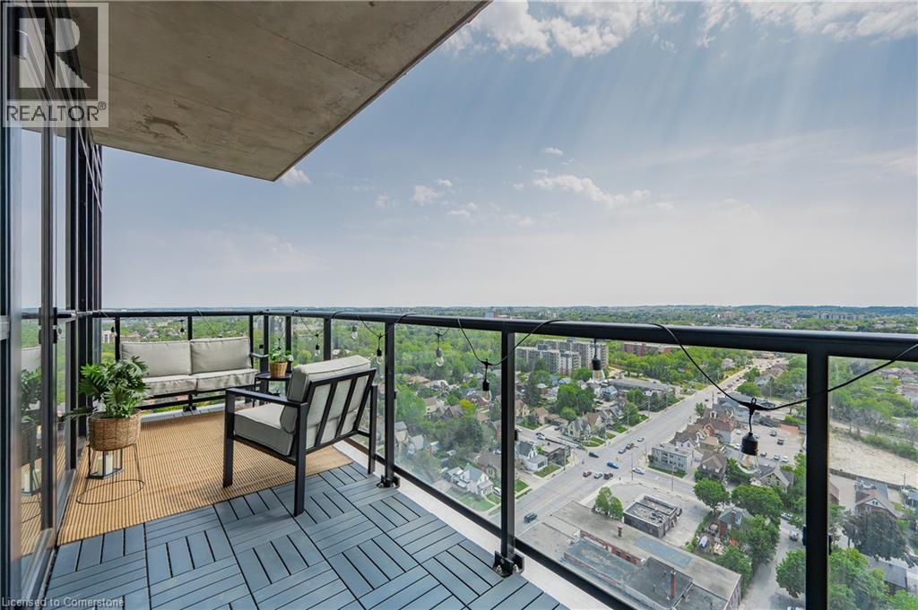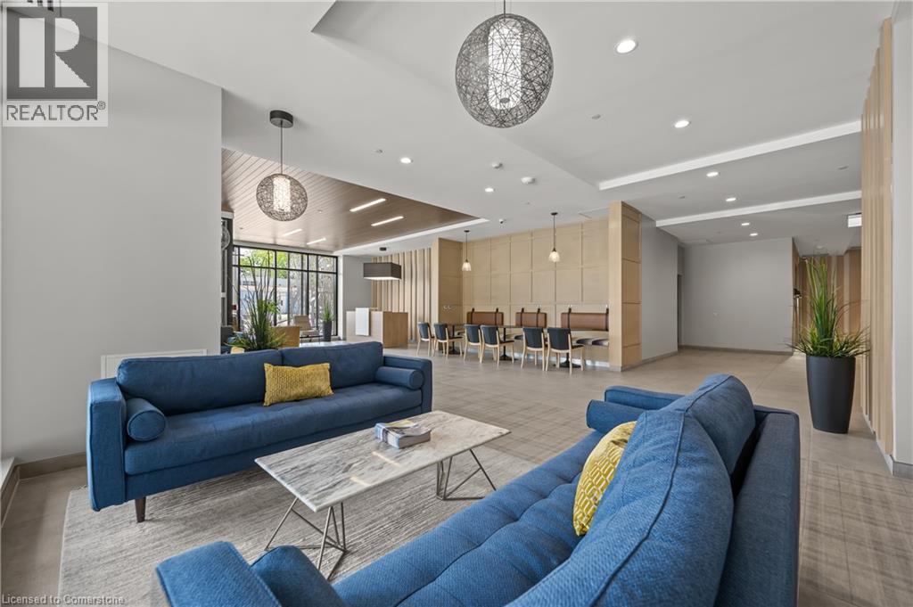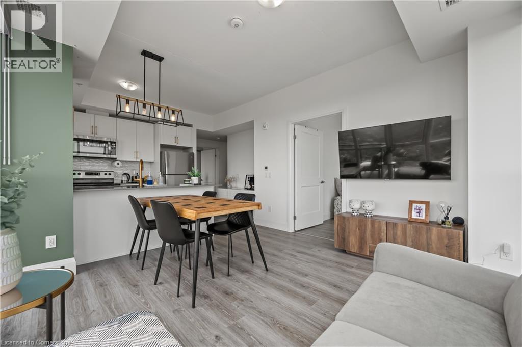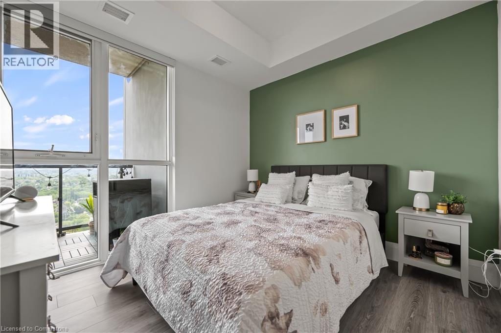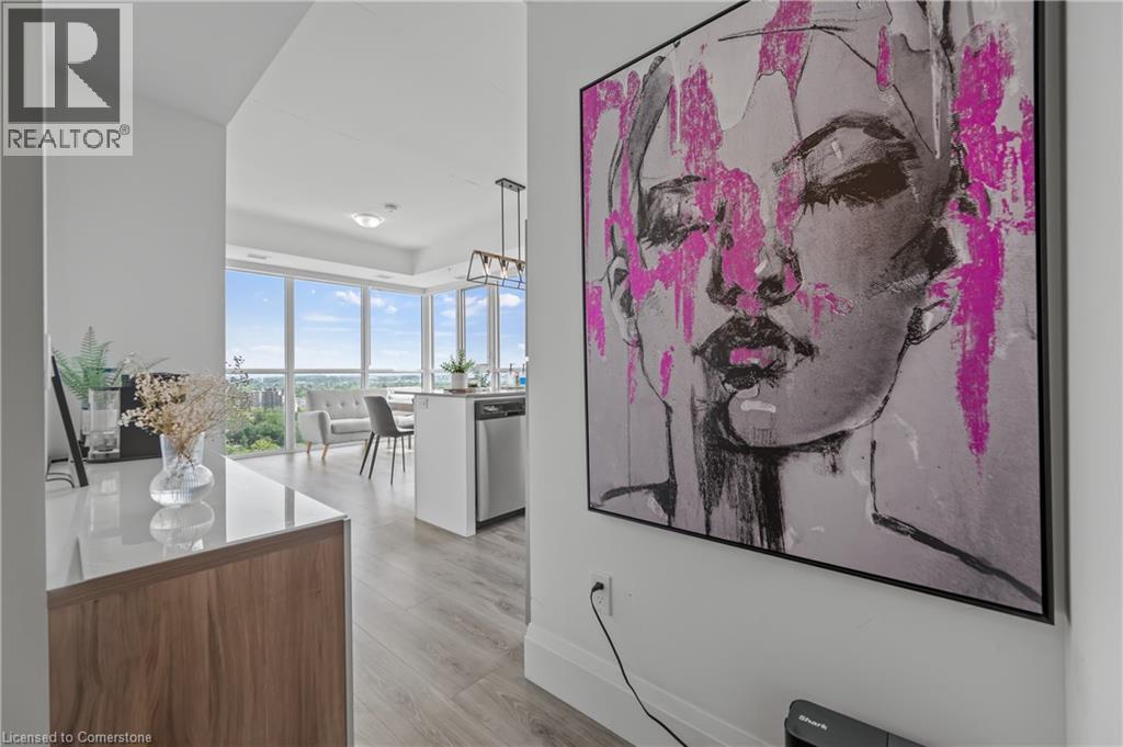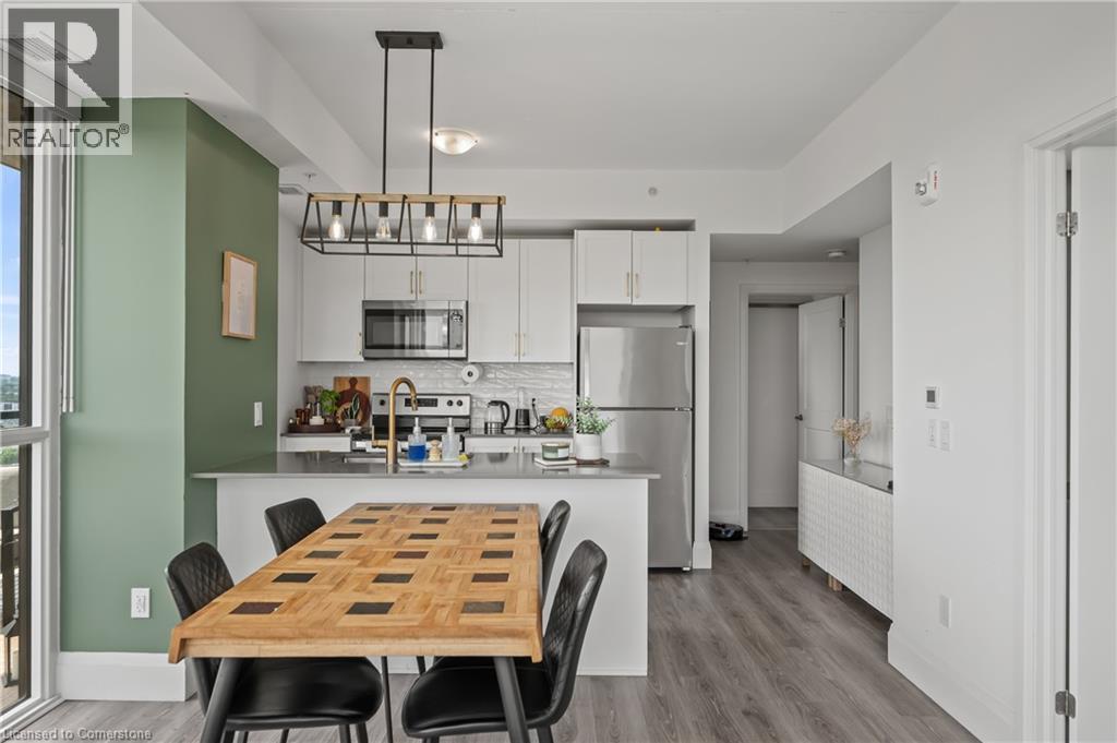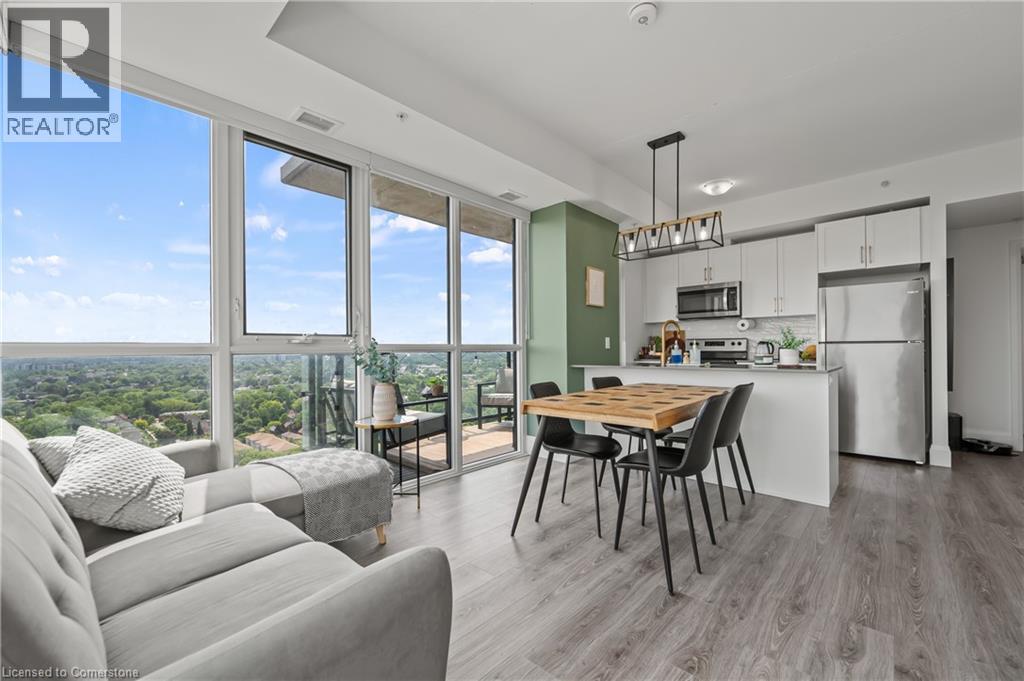 Luxury Corner Unit at Garment Street Condos-Experience elevated urban living in the heart of Kitchener’s Innovation District. This bright, south-facing corner unit offers 2 bedrooms, 2 bathrooms, a locker, and one underground parking space—perfectly blending style and convenience. Floor-to-ceiling windows and an open-concept layout flood the 750 SF space with natural light. The modern kitchen features quartz countertops, a breakfast bar, subway tile backsplash, and premium appliances, flowing seamlessly into the integrated dining area and living room. Step out onto your extra-wide private balcony and take in panoramic city views. The spacious primary suite boasts a walk-in closet and a stylish 3-piece ensuite, while the second bedroom and full 4-piece bath provide flexibility for guests or a home office. Laminate flooring and in-suite laundry add to the move-in-ready appeal. Garment Street Condos offers exceptional amenities: rooftop pool, fitness centre, yoga studio, basketball court, BBQ terrace, co-working spaces, media room, pet run, concierge service—and high-speed internet is included in the condo fees. Situated just steps from top employers like Google’s Canadian HQ, Communitech, Miovision, Vidyard, D2L, and ApplyBoard, and minutes to the University of Waterloo’s Pharmacy School and new School of Medicine, this location is unmatched for professionals and investors alike. Walk to Victoria Park, the LRT Central Station, the GO Train, and downtown Kitchener’s top restaurants, cafes, breweries, and boutiques. Whether you're a professional, investor, or seeking low-maintenance luxury, this is the one. Live where tech, culture, and convenience meet—book your private showing today! (id:46441)
