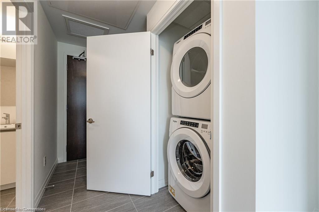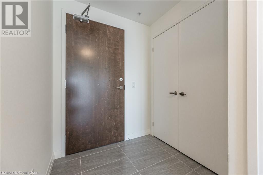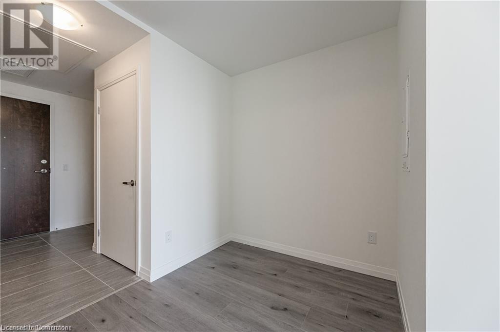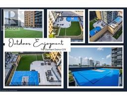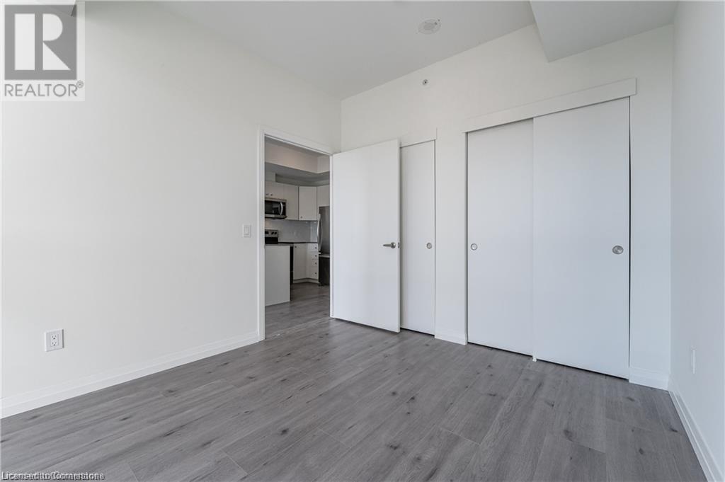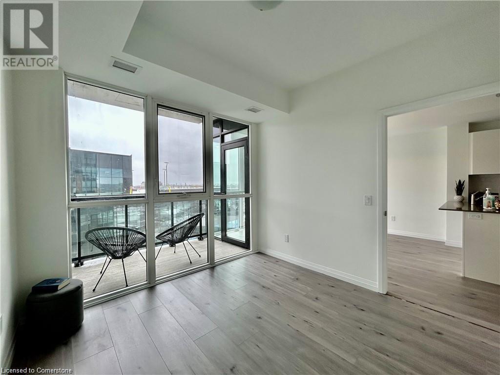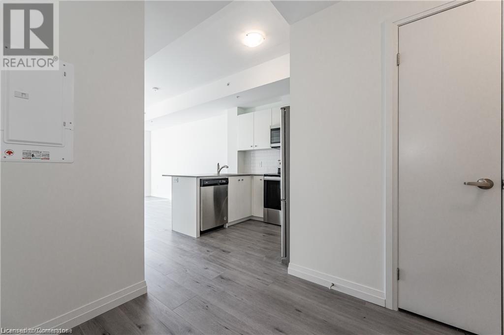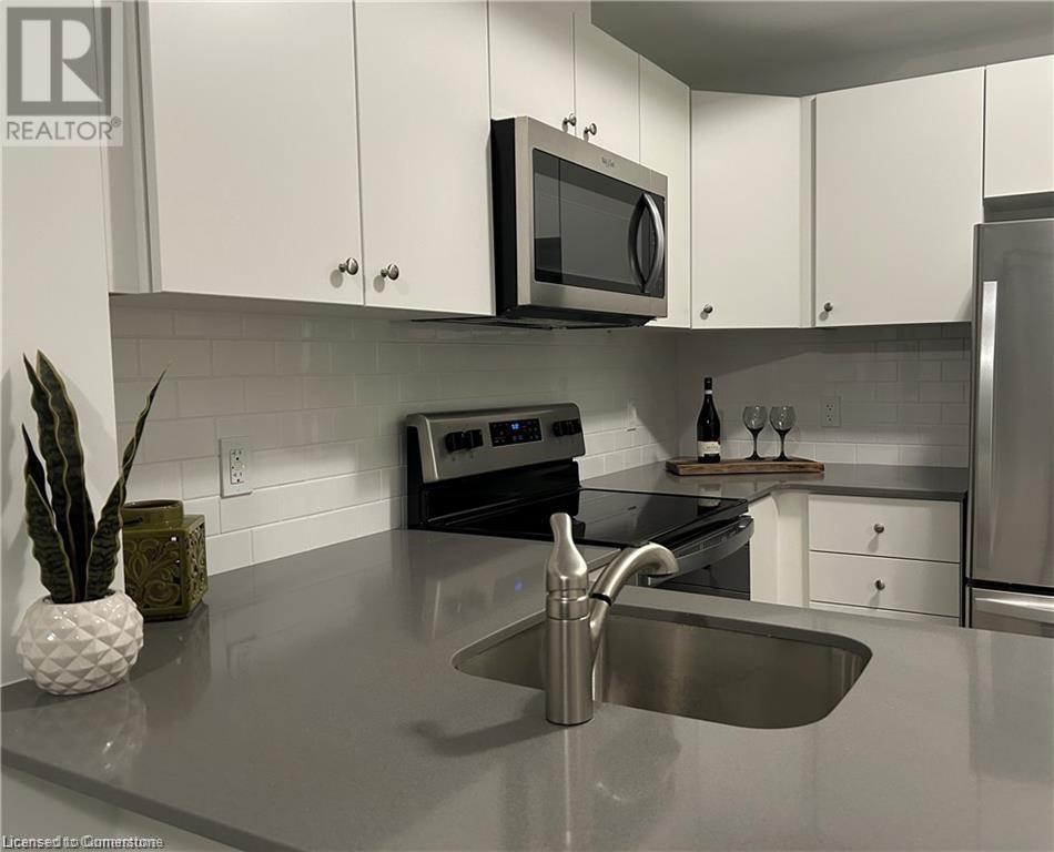 Exceptional 1-Bed + Den Condo with Parking. Tower 3, Garment Street Condos. Discover upscale, low-maintenance living in the heart of Kitchener’s vibrant Innovation District! This stylish condo offers the ideal urban lifestyle, complete with parking, and just steps from Downtown Kitchener’s shops, restaurants, Victoria Park, and the future LRT Hub. Enjoy easy access to the GO Train, ION Light Rail, public transit, and major employers like Google, U of W’s Health Sciences Campus, D2L, Deloitte, The Tannery, and more. With a Walk Score of 72, Transit Score of 63, and Bike Score of 85, this location is perfect for walking and cycling enthusiasts, with trails and Belmont Village nearby. Building Amenities Include: entertainment room with kitchen, fitness centre, theatre, RESORT-STYLE POOL, landscaped rooftop terrace with BBQs, SPORTS COURT, YOGA studio, cozy outdoor space for relaxing, pet run/wash area, secure car & bike parking, and WIRELESS INTERNET throughout. Inside the Unit: Flooded with natural light from floor-to-ceiling windows, the open-concept layout boasts high ceilings, engineered flooring, and a gourmet kitchen with contemporary cabinetry, granite countertops, stainless steel appliances, chic backsplash, and a peninsula perfect for entertaining. The spacious bedroom features a WALL TO WALL CLOSET, complemented by a generous 4-pc wheelchair-accessible bathroom. In-suite laundry adds convenience to this already exceptional unit. This beautifully designed building offers everything you need for modern living in an unbeatable location. Contact your agent today to book a showing! (id:46441)