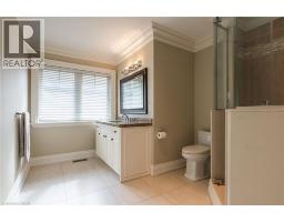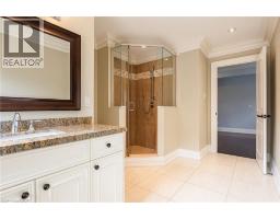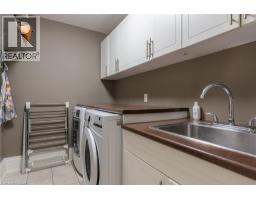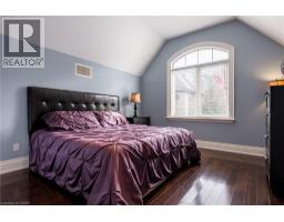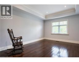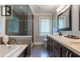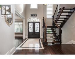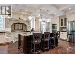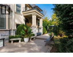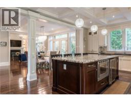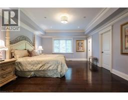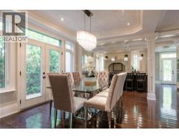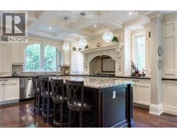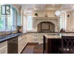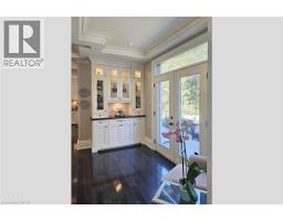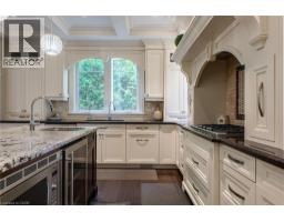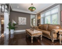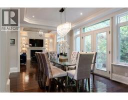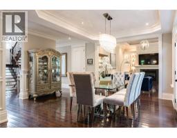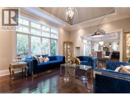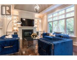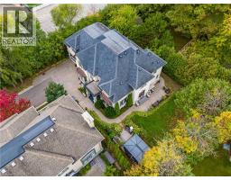 Distinguished custom-built two-storey residence offers over 5,600 square feet of refined living space, including approximately 3,700 square feet above grade and nearly 2,000 square feet in a luxuriously finished lower level nestled within a prestigious Bronte East enclave. Step through the double entry doors into an impressive two-storey foyer crowned by soaring 20-foot ceilings and an open gallery overlook. Expansive transom windows bathe the space in natural light, highlighting the floating hardwood staircase with wrought-iron railings. Main level unfolds with an open-concept layout featuring hardwood floors, vaulted and recessed ceilings, French doors, custom millwork, and oversized picture windows that fill each room with light. Family room serves as a true architectural centerpiece with its 14-foot vaulted ceiling and floor-to-ceiling fireplace, while six additional rooms offer the flexibility to tailor each space to your lifestyle. Chef's kitchen blends form and function with custom cabinetry, premium built-in appliances, and an expansive centre island ideal for both cooking and entertaining. The upper level hosts four spacious bedrooms, including a primary suite overlooking the rear and side gardens. This retreat features a spa-inspired five-piece ensuite complete with a floor-to-ceiling glass shower and whirlpool-style jetted tub. Two of the secondary bedrooms boast graceful, vaulted ceilings, adding a sense of airiness and architectural character. Mature trees and lush greenery envelop the property, creating serene views from every window. Professionally finished lower level extends the home's luxurious living space, offering a recreation room, theatre room or fifth bedroom, home office, above-grade windows, and a three-piece bath. Outside, the manicured backyard oasis features a gazebo and flower garden, providing a tranquil setting for relaxation or entertaining. A true beauty that you can not miss. Main level laundry room, plus upper level laundry room. (id:46441)