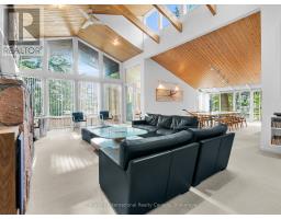 Epic Muskoka Estate, 934 of Pristine Lake of Bays Frontage, 16 Acres, West-Facing Point - A true once-in-a-generation opportunity. Towering white pines, granite outcrops, and unspoiled forest, this iconic property spans two separately deeded lots, including a dramatic point of land that captures all-day sun and southwest sunsets that light up the water. At the heart of the estate is a 5,000+ sq ft West Coast inspired modernist cottage that blends natural beauty with bold architecture. Inside, you'll find 5 bedrooms, 5 bathrooms, a full sauna, a soaring great room with a massive granite fireplace (rock pulled from the actual property), and an oversized dining room perfect for entertaining on a grand scale. The estate is complete with a 2,000+ sq ft guest house, two separate garages (including a 3-car garage), multiple decks and sundecks, a boat port, private beach, gazebo, and custom docks nestled along the shore. From flat lawn space for family fun to rugged granite slopes plunging into crystal-clear water, every inch of this property is Muskoka at its most majestic. Conveniently located near Baysville, Dwight, and Dorset, and just moments away by boat or car from prestigious Bigwin Island Golf Club, Lake of Bays Sailing and Tennis Clubs. Outdoor enthusiasts will delight in the proximity to exceptional cycling, hiking trails, cross-country skiing, and year-round recreational opportunities that make Lake of Bays one of Muskoka's most sought-after destinations. Incredible privacy, sun exposure, and development potential whether you're looking to create a family compound or explore the possibility of severance and multiple builds, this is one of the last large parcels available on Lake of Bays. Properties of this scale and quality rarely come to market. Sunrise and sunset big lake views. Total seclusion. Limitless potential. This is a crown jewel of Lake of Bays. (id:46441)