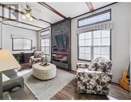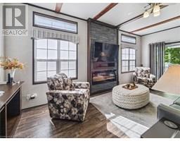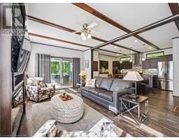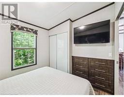 Welcome to an extraordinary chance to own a fully turn-key cottage in one of Muskoka’s most sought-after gated communities. This one-of-a-kind fully upgraded Cypress model is the only cottage of its kind in the resort and the largest, making it a rare and highly desirable offering. Privately tucked away, this stunning cottage backs onto a natural forest with iconic Muskoka rock formations and offers no side neighbors, creating a peaceful and secluded private oasis making it the perfect setting to relax and unwind. Featuring 2 spacious bedrooms and 2 full bathrooms, including a private ensuite, this beautifully designed retreat offers a bright open-concept layout with an expansive kitchen, complete with an oversized island with breakfast bar and sink, ideal for cooking and entertaining. Enjoy cozy evenings by the electric fireplace with stone veneer surround, while sunlight streams through the wrap around windows with sunrise views. This property comes fully furnished and entirely equipped just bring your suitcase! Included are small kitchen appliances, utensils, cutlery, pots, pans, and much more! Step outside to your dual upgraded covered porches featuring railings and entry systems, patio furniture, a tabletop firepit, two BBQs, and even a Traeger smoker for the ultimate outdoor dining experience. You’ll also find ample storage with two sheds, perfect for all your gear and extras. Optional upgrades include a Rinker Captiva 228 Bowrider boat and an E-Z GO golf cart, taking your resort lifestyle to the next level. Enjoy full access to the resort’s incredible amenities, including a private beach, multiple pools, basketball and tennis courts, horseshoe pits, marina access, and more. This exceptional cottage is a true masterpiece and fully stocked, beautifully maintained, and ready for you to start creating unforgettable memories in the heart of picturesque Muskoka. A rare find that truly has it all—don’t miss out! (id:46441)
