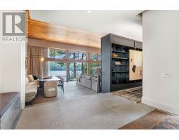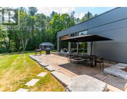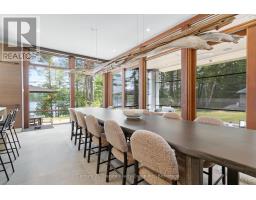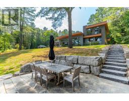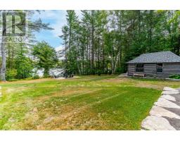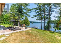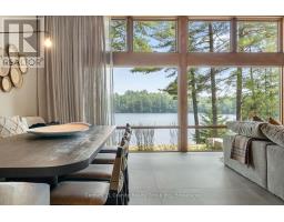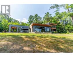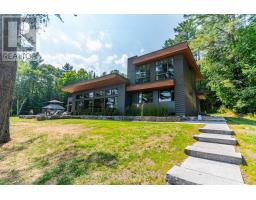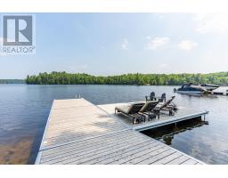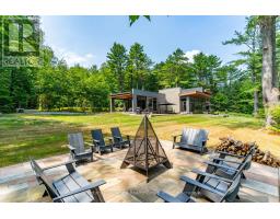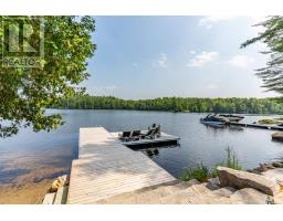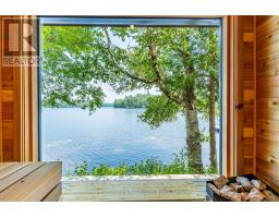 Escape to Pure Luxury on sought-after Soyers Lake, part of Haliburton's scenic 5-lake chain, where modern comfort embraces classic cottage living with breathtaking sunrises! Year-round exquisitely updated & thoughtfully designed 4 bedroom, 4 bath waterfront cottage/home with approximately 4000sqft of living space, 2 acres, over 300 of pristine waterfront and gorgeous lake views. Step inside to discover quality custom finishes and a bright, spacious living space where large windows capture breathtaking lake views throughout. Here, you'll find warm walnut finishes throughout, high ceilings & recent top-quality upgrades enhancing both style & functionality while ensuring year-round enjoyment. The main level features a spectacular, custom kitchen made for entertaining family/guests with a walkout to an inviting seasonal room; a generous living room with lake views, wood burning fireplace, retracting media screen & electric window coverings compliment warm finishes; 2 bedrooms w/3 pc ensuites; and mudroom (all on radiant in-floor heating) & ceiling speakers in the LR, Kitchen & Patio area. Upstairs offers 2 further bedrooms w/3 pc ensuites. The lower level includes a Family Room, laundry room & utility rooms. The level lakeside boasts a BBQ patio for dining alfresco and a welcoming firepit patio for memorable bonfires & stargazing. Water fun begins with two large Naylor docking systems to accommodate all the boats/watersports. Deep off the docks, but the shallow entry sandy beach is perfect for all ages. As a bonus, enjoy a tranquil waterfront sauna & hot tub, especially after a match on the Pickle Ball court. A spacious original log cabin is perfect for storage or an indoor games area. Granite walkways & landscaping and towering trees. The beautifully asphalt paved driveway offers a smooth drive in and ample parking for all the guests. Generac Generator for the entire cottage/home. Close to local amenities/events & trails. (id:46441)