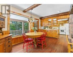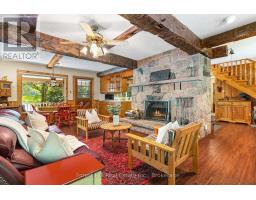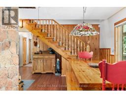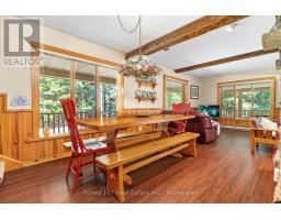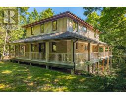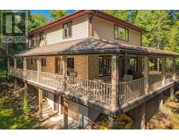 Welcome to one of the nicest properties on Kawagama Lake! EXTREMELY PRIVATE, Algonquin-esque POINT-OF-LAND with 1,025 feet of rocky/sandy shoreline, 2.4 acres of mature forested land with multiple, sun exposures (i.e. south, east and north), where sunsets can be enjoyed on the north side of the point or take in sunrises on east/SE side of the point. This unparalleled, level property is located beside CROWN LAND which provides extra privacy "at no cost"! There's a well-built, fully insulated/WINTERIZED, spacious, two-storey cottage/home. The main dwelling (~2,268 sq ft) has 4-bedrooms and 2 bathrooms (including roughed-in bathroom plumbing in basement). It was built in 1985 and has an ENORMOUS wrap-a-round sundeck/covered porch with Dura decking and an aluminum railing. There's a massive, granite rock fireplace in the living area and an old Elmira cook stove in its country-style kitchen, 200 yr-old hand-scribed (barn) square timber ceiling beams, pine accents, hickory hardwood flooring and much more! HIGH SPEED INTERNET is on site. 297' drilled well with a buried heat line. Approved septic system (1985). Owner pumped out septic tank in 2023. Guest cabin by the shoreline edge is nostalgically quaint with a 1950's vibe, electricity & running water and in great condition. The other cabin (1940's) is in rough shape (i.e. realistically a "teardown"), but its footprint by the lake's edge is valuable. All dwellings are fully furnished together w/appliances. This property is idyllic for wading & swimming, in either shallow or deep waters on sand or rock. Shoreline Road Allowance (SRA) is owned. Two surveys are available. Long winding, private treed driveway. Access to many trails on crown land nearby for snowmobiling, ATVing, hiking, cycling, snowshoeing and much more. Kawagama Lake (i.e. the largest in Haliburton) is excellent for trout & bass fishing. Conveniently located within 3 hrs of the Toronto area. Check out this special property that boasts so much privacy! (id:46441)
