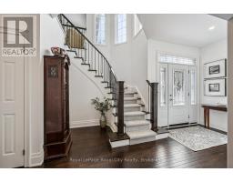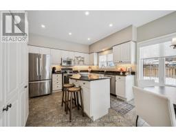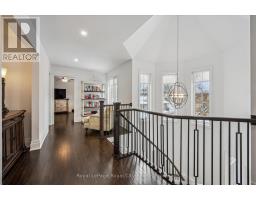 Tucked away in Manor Park Mews, a charming cul-de-sac of just 12 detached homes surrounding the historic Manor Park house, this impressive stone home is designed for both everyday comfort and elegant entertaining. The main floor welcomes you with a stunning entry, rich hardwood floors, crown moulding, recessed lighting, and custom blinds throughout. A gracious living room with fireplace flows seamlessly into the formal dining room, where a statement chandelier creates an inviting setting for memorable gatherings. The bright, eat-in kitchen features stainless steel appliances, granite countertops accented by under-cabinet lighting, and a breakfast area with a walkout to the spacious backyard. A classic curved staircase leads to the upper level, where a generous landing with a sitting area enhances the sense of space and light. All three bedrooms feature their own private ensuite, offering exceptional comfort and privacy. The primary suite is a true retreat, complete with a walk-in closet and spa-inspired ensuite with soaker tub. A convenient second-floor laundry room adds everyday ease. Set along the riverbank with direct access to scenic walking trails and a community tennis court, this home offers a fabulous low-maintenance lifestyle just steps from downtown shops, cafés, and restaurants! (id:46441)