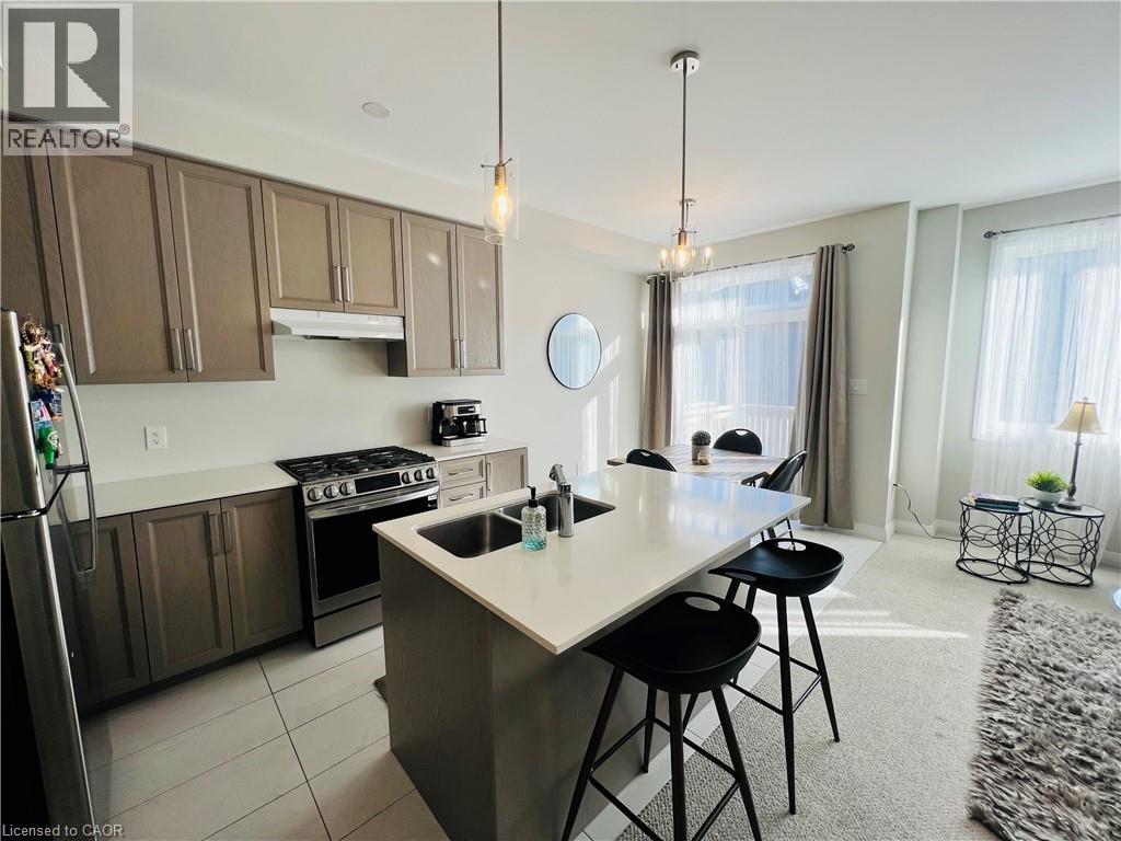 Welcome to this beautifully newly built semi-detached 2-storey home, thoughtfully crafted by the reputable Spallaci Home Builders. Nestled in the highly sought-after, upscale, & family-friendly West Hamilton Mountain neighbourhood, this home offers the perfect combination of modern design, everyday comfort, & exceptional convenience. From the moment you arrive, the inviting brick & stone exterior & charming covered porch create a warm & welcoming first impression. Step inside to discover a bright, open living space enhanced by 9-foot ceilings & large windows that fill the main floor with natural light, creating an uplifting & spacious atmosphere. The heart of the home is the stunning kitchen, featuring quartz countertops, sleek overhead cabinets & drawers, & a seamless walk-out to the rear deck—ideal for outdoor dining, entertaining, or simply enjoying a quiet moment outside. The modern open-concept layout makes hosting & everyday living feel effortless, with a smooth flow from kitchen to dining to living areas. Upstairs, the home continues to impress with a well-designed second floor that offers comfort & privacy for the whole family. The main bedroom serves as a peaceful retreat, complete with a private ensuite bath & a walk-in closet. Two additional bedrooms provide flexibility for children, guests, or office space—one of which includes its own walk-in closet for added convenience. The separate second-floor laundry room is a thoughtful & practical touch that simplifies daily routines. The partially finished basement, complete with a 3-piece bath, offers excellent potential for additional living space—whether you envision a cozy family room, home gym, hobby area, or guest suite. Perfectly located minutes from the Garth & Upper James shopping areas, & a short distance to nearby parks & schools, this home delivers style, comfort, & convenience in one exceptional package. A wonderful opportunity to enjoy modern living in a fantastic neighbourhood—welcome home! (id:46441)